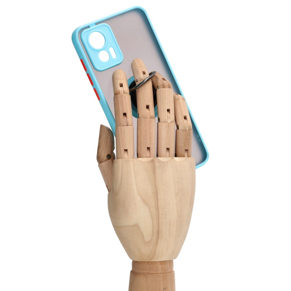 Etui z uchwytem na palec Bizon Case Hybrid Ring do Motorola Edge 30 Neo, przydymione z jasnoniebieską ramką