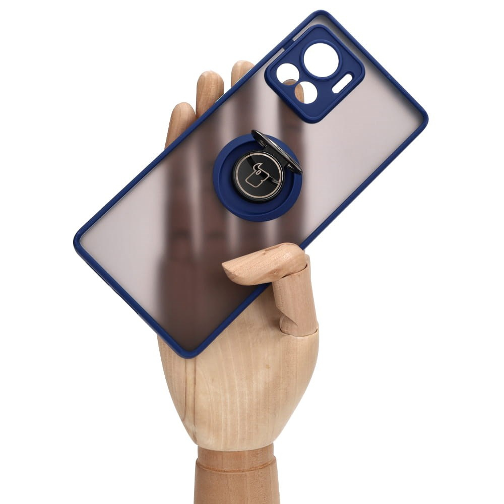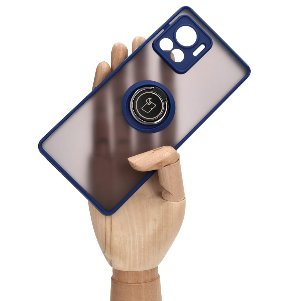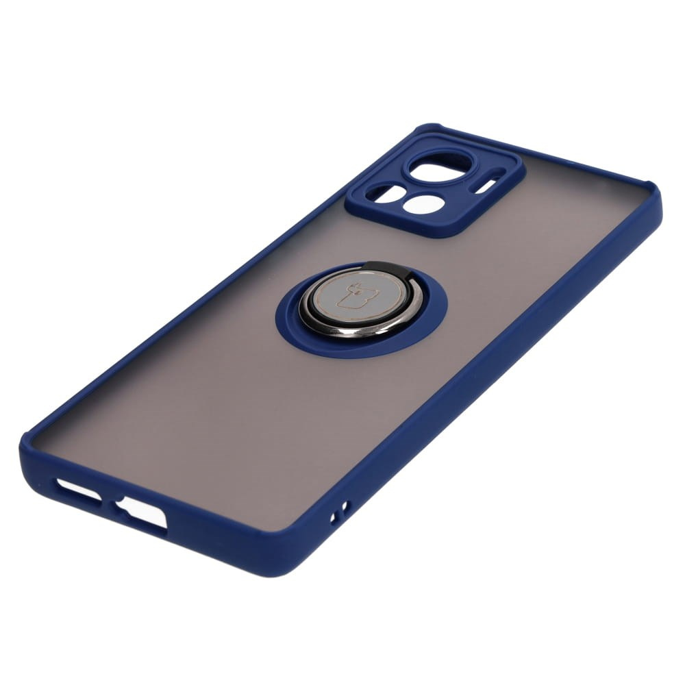 Etui z uchwytem na palec Bizon Case Hybrid Ring do Motorola Edge 30 Ultra, przydymione z granatową ramką