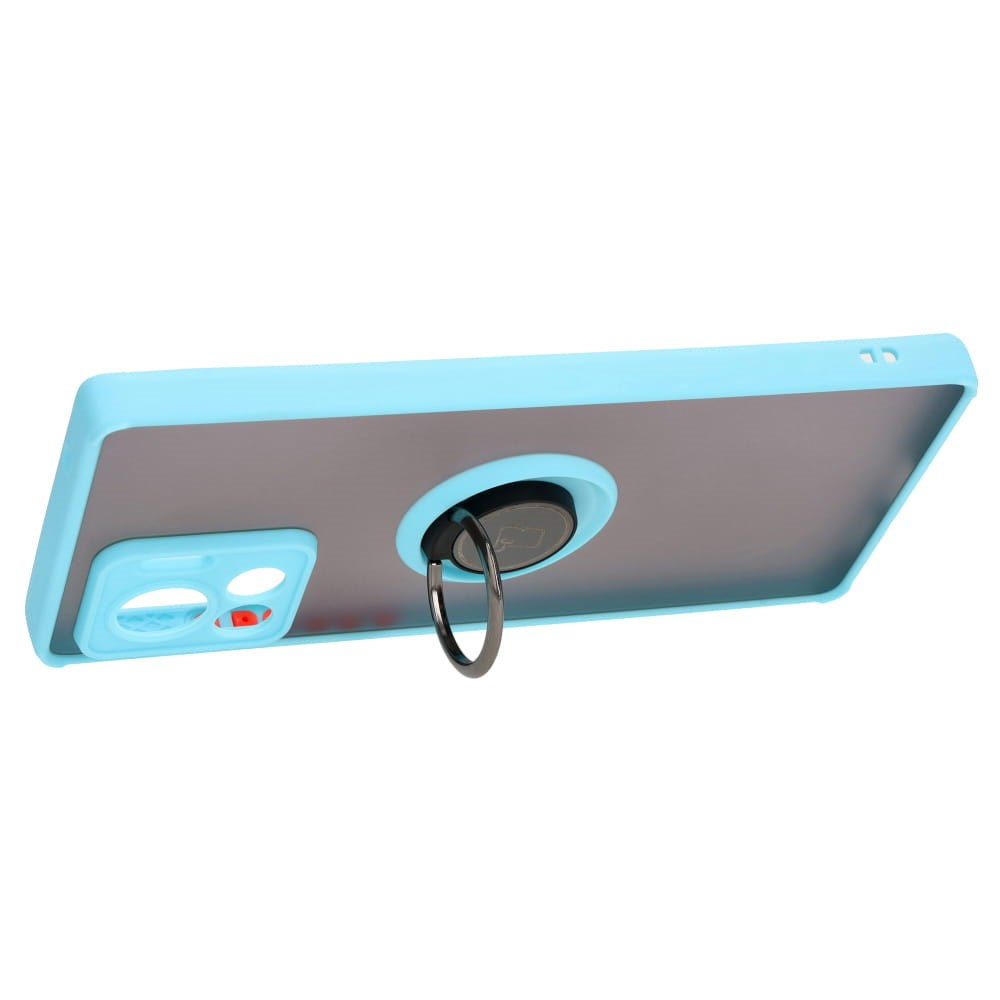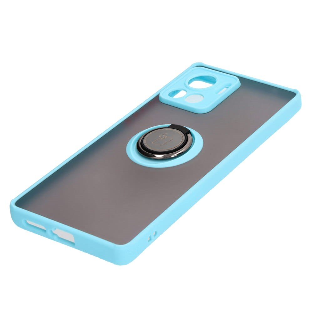 Etui z uchwytem na palec Bizon Case Hybrid Ring do Motorola Edge 30 Ultra, przydymione z jasnoniebieską ramką