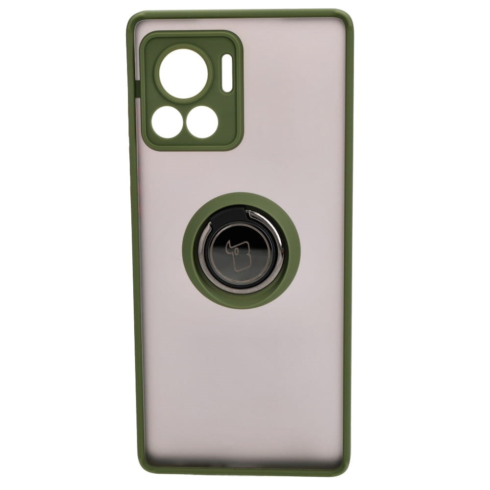 Etui z uchwytem na palec Bizon Case Hybrid Ring do Motorola Edge 30 Ultra, przydymione z zieloną ramką