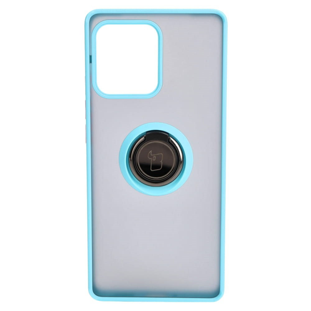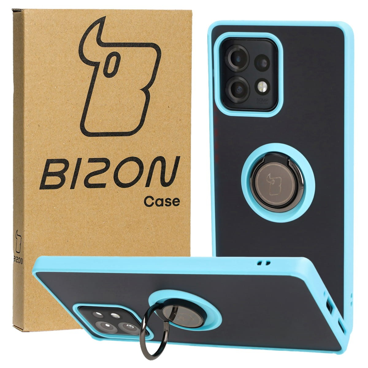 Etui z uchwytem na palec Bizon Case Hybrid Ring do Motorola Edge 40 Pro, przydymione z jasnoniebieską ramką