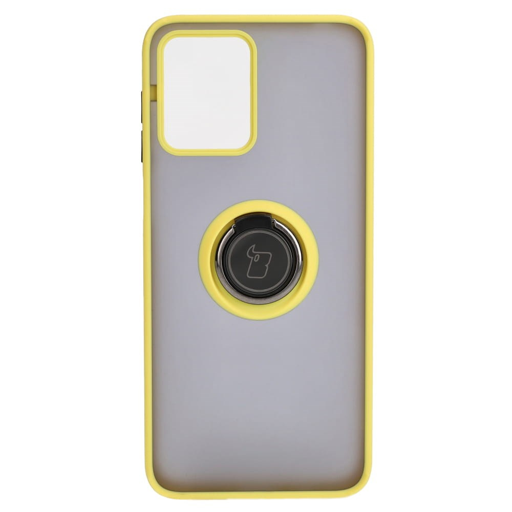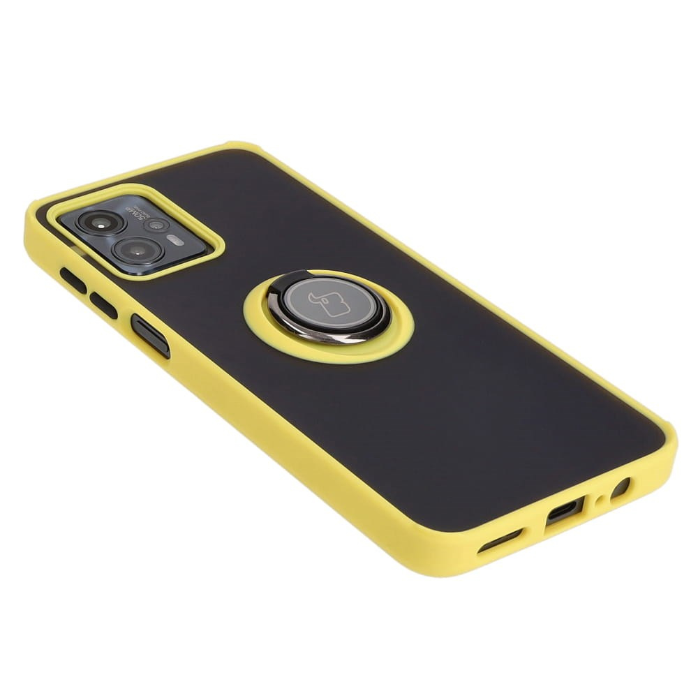 Etui z uchwytem na palec Bizon Case Hybrid Ring do Motorola Moto G13 / G23 / G53 5G, przydymione z żółtą ramką