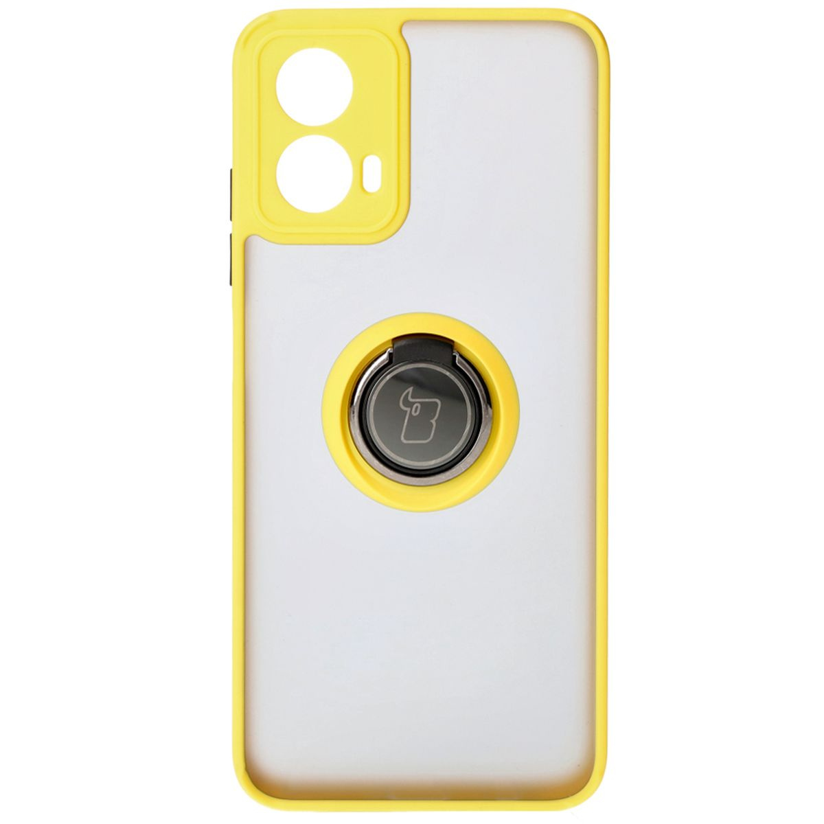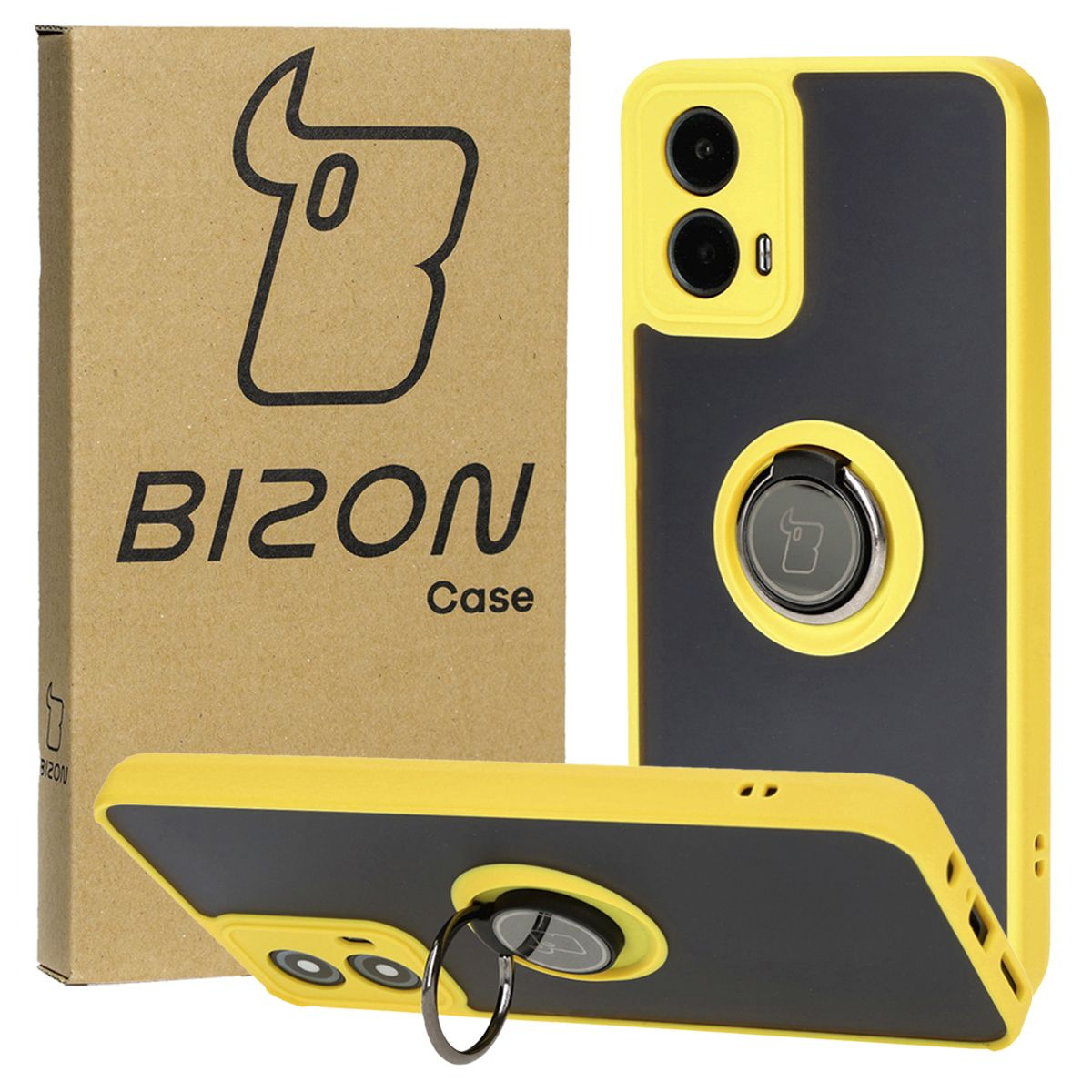 Etui z uchwytem na palec Bizon Case Hybrid Ring do Motorola Moto G34 5G, przydymione z żółtą ramką