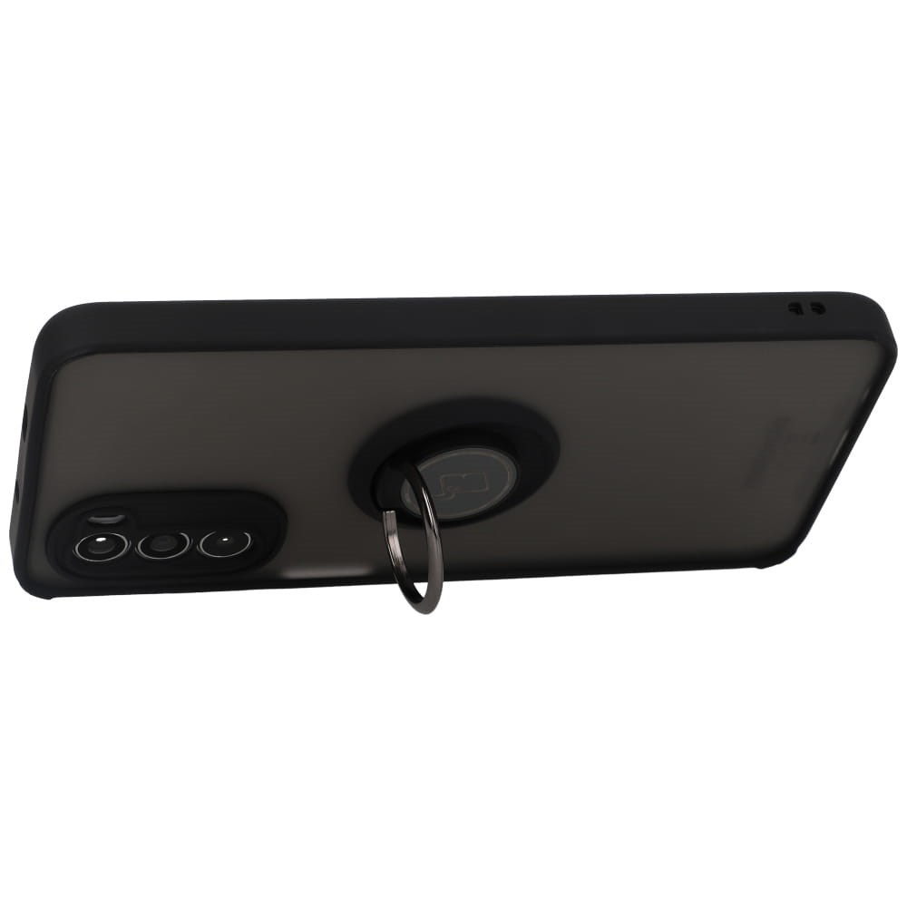 Etui z uchwytem na palec Bizon Case Hybrid Ring do Motorola Moto G52 / G82, przydymione z czarną ramką