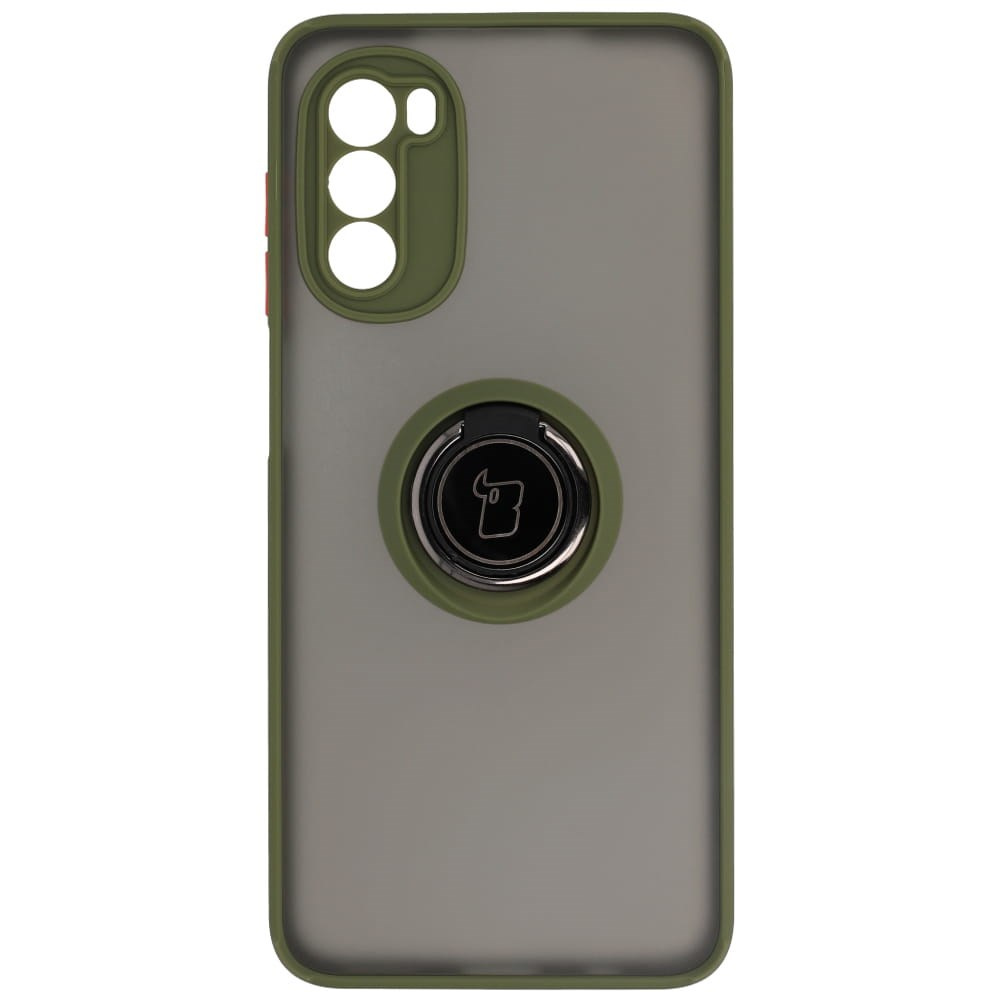 Etui z uchwytem na palec Bizon Case Hybrid Ring do Motorola Moto G52 / G82, przydymione z zieloną ramką