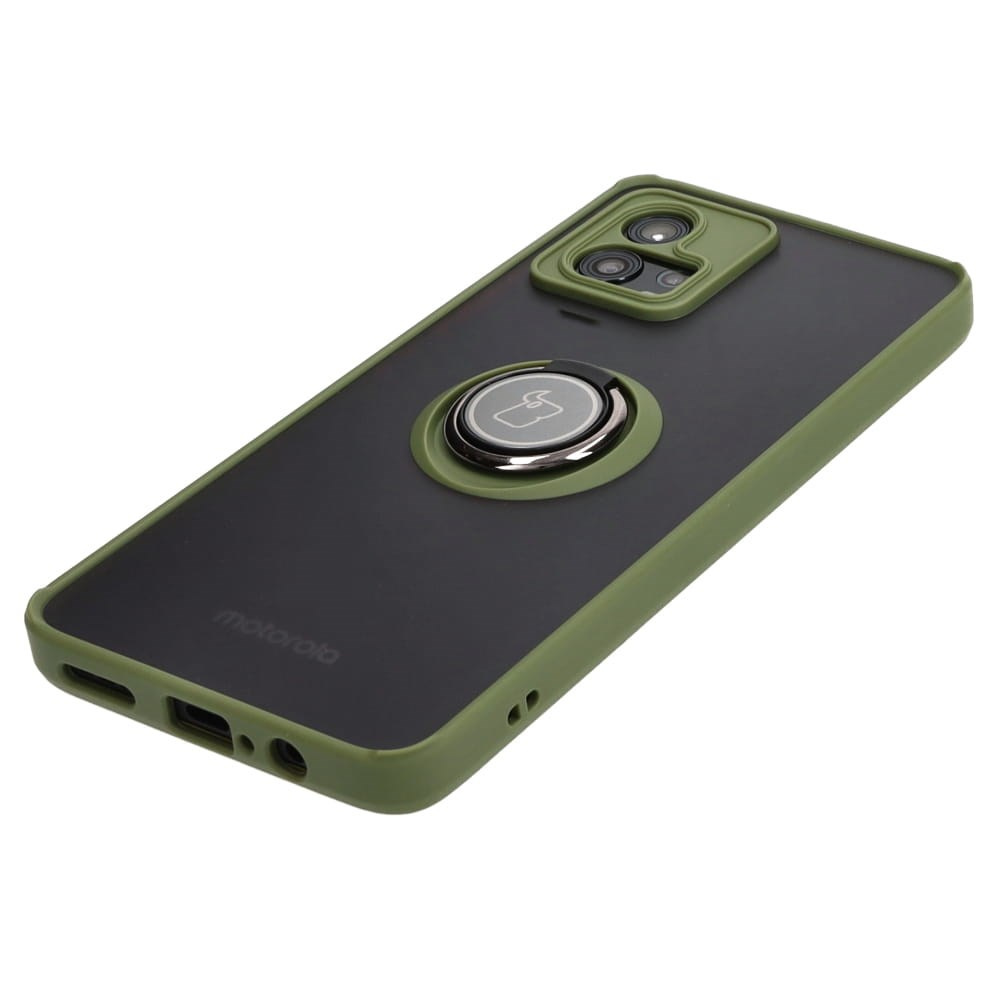 Etui z uchwytem na palec Bizon Case Hybrid Ring do Motorola Moto G72, przydymione z zieloną ramką