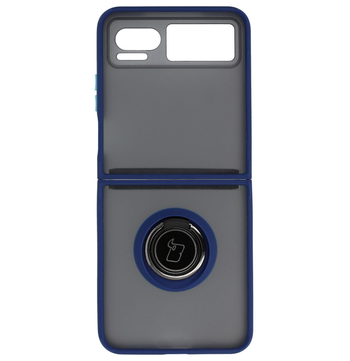 Etui z uchwytem na palec Bizon Case Hybrid Ring do Motorola Razr 40, przydymione z granatową ramką