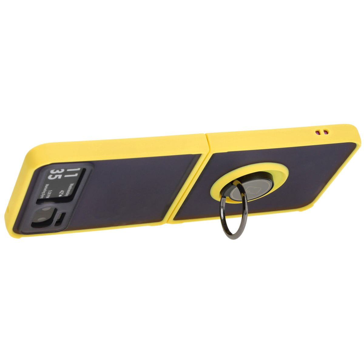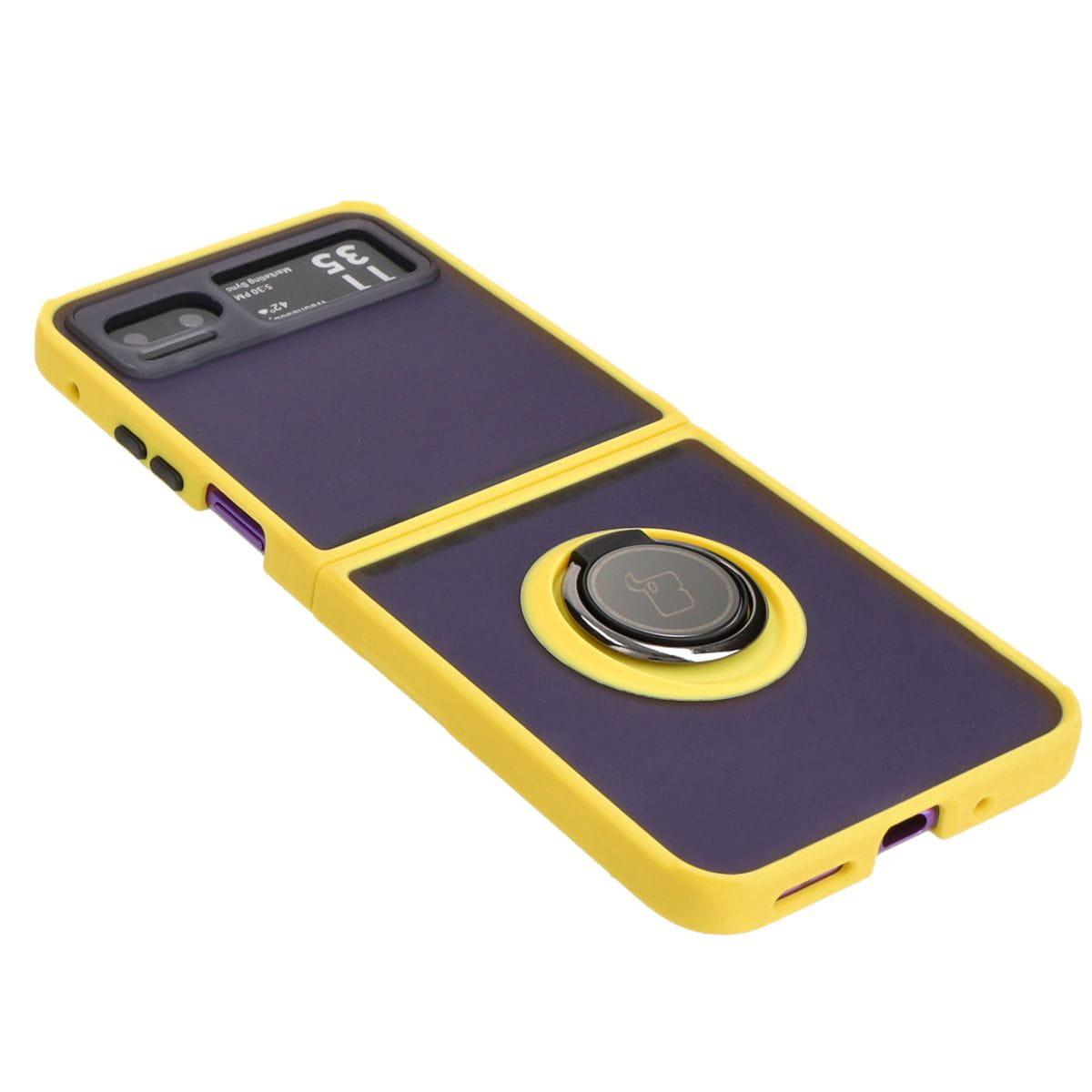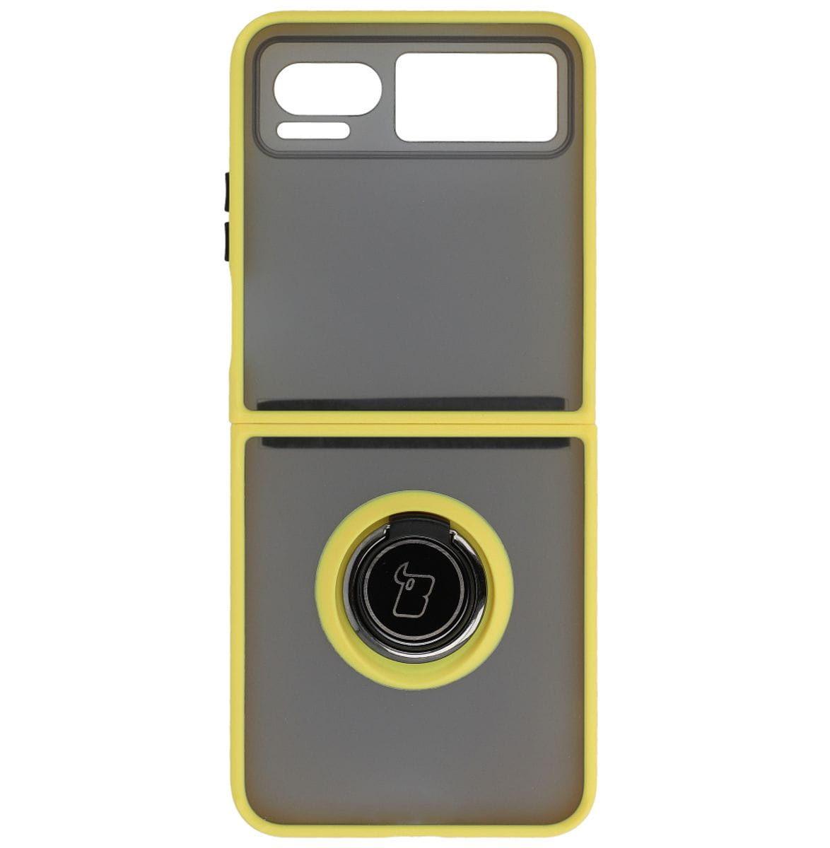 Etui z uchwytem na palec Bizon Case Hybrid Ring do Motorola Razr 40, przydymione z żółtą ramką