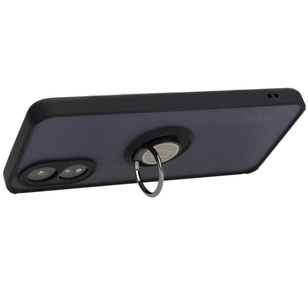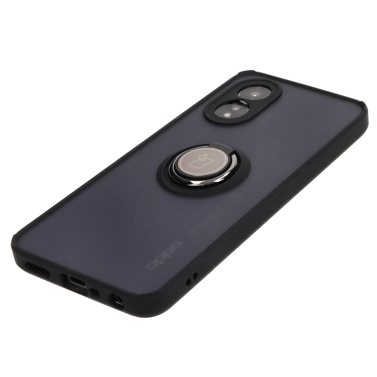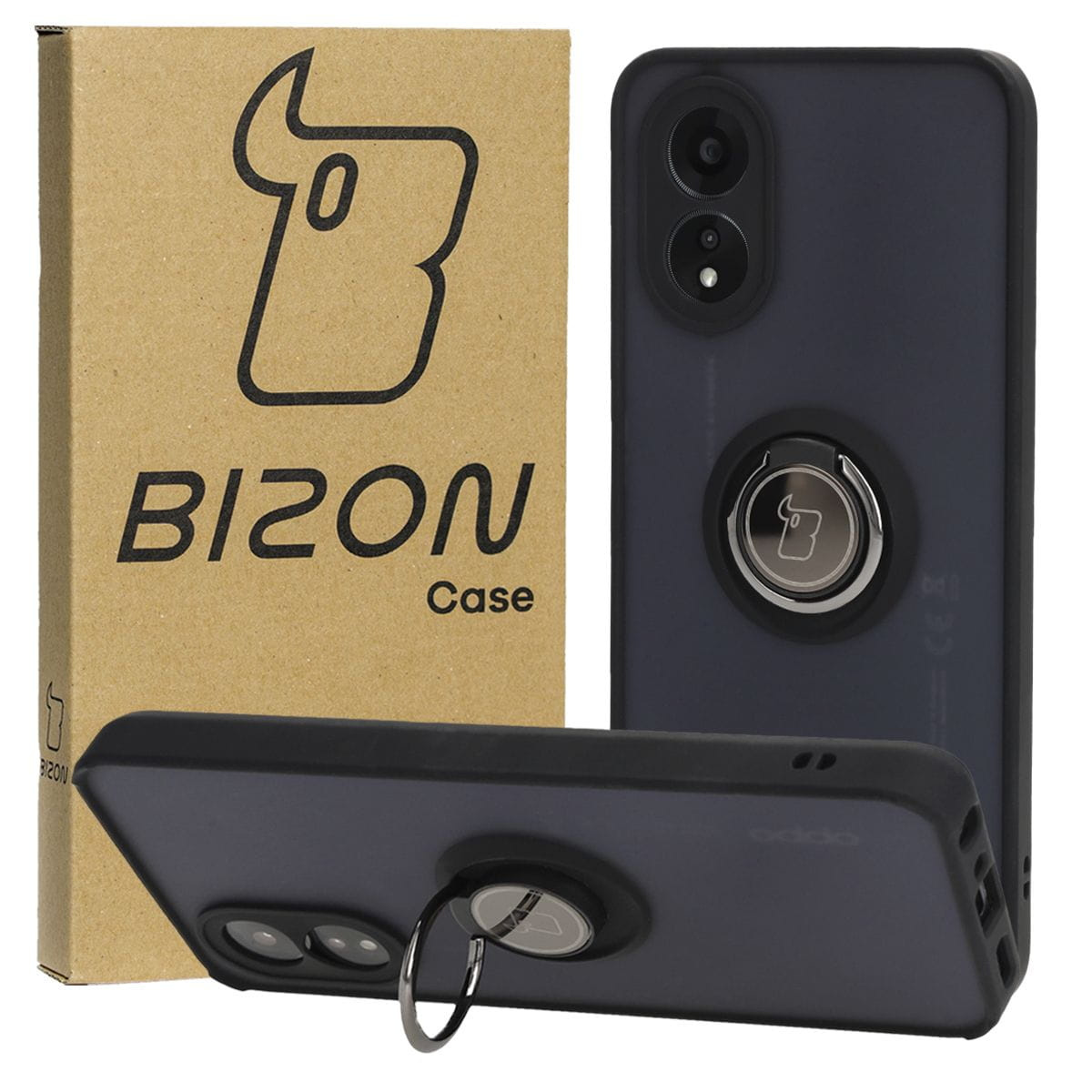 Etui z uchwytem na palec Bizon Case Hybrid Ring do Oppo A38 4G, przydymione z czarną ramką