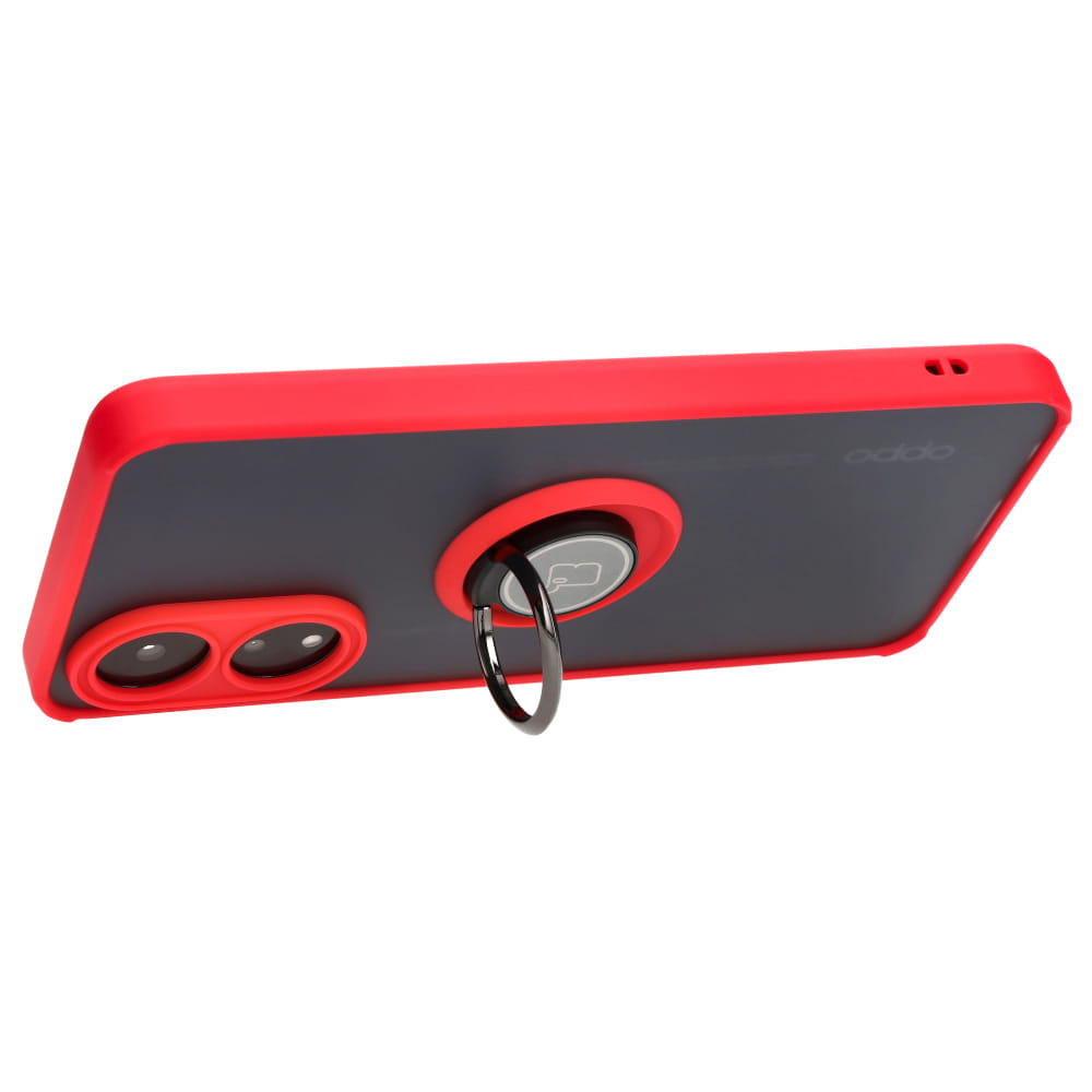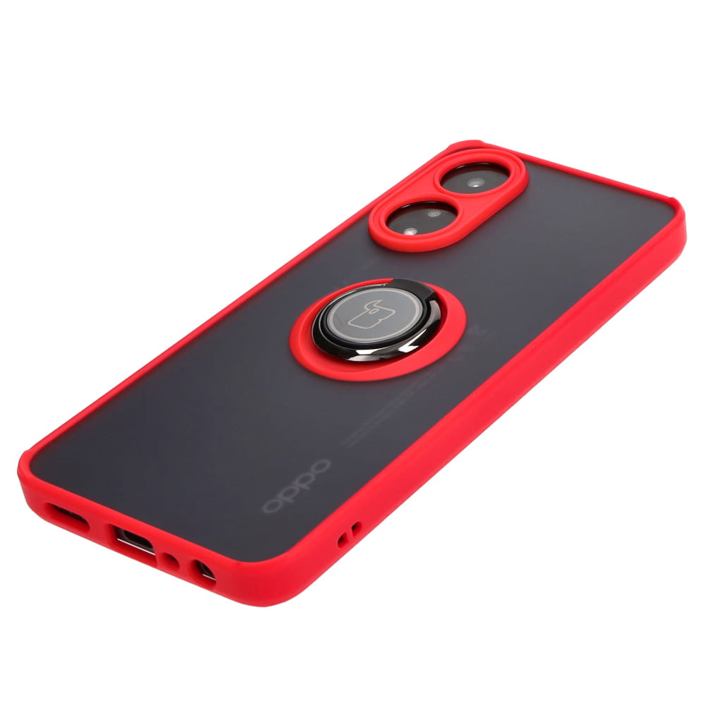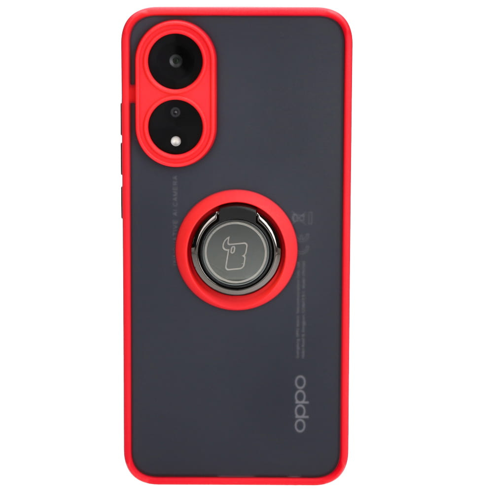Etui z uchwytem na palec Bizon Case Hybrid Ring do Oppo A78 4G, przydymione z czerwoną ramką