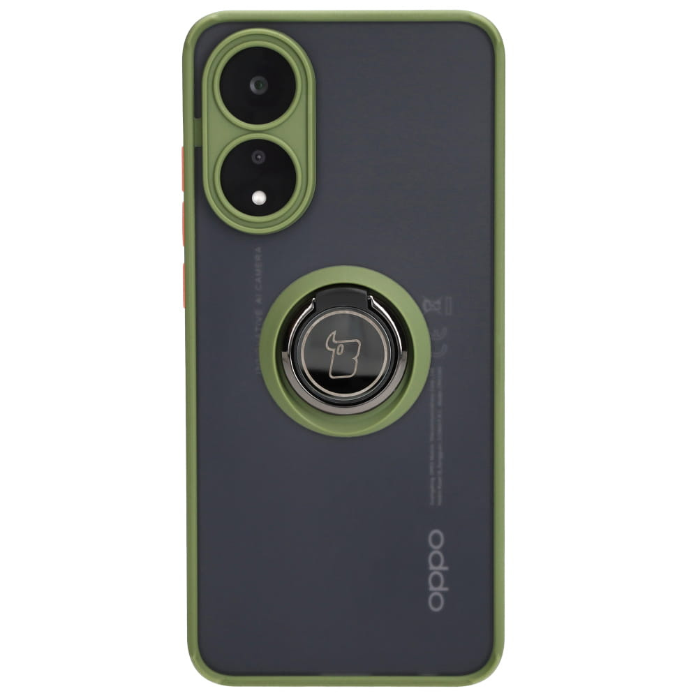 Etui z uchwytem na palec Bizon Case Hybrid Ring do Oppo A78 4G, przydymione z zieloną ramką