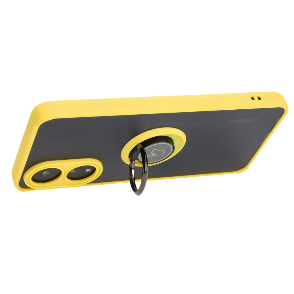 Etui z uchwytem na palec Bizon Case Hybrid Ring do Oppo A78 4G, przydymione z żółtą ramką