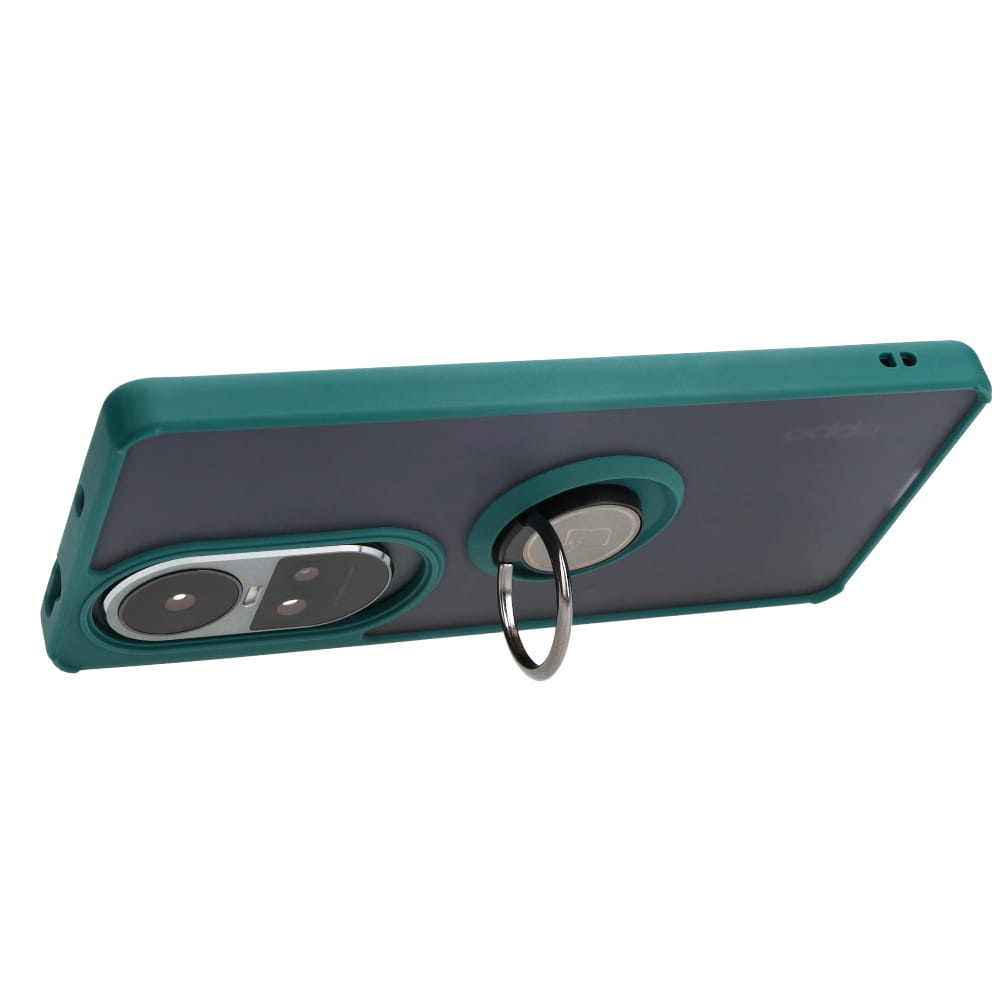 Etui z uchwytem na palec Bizon Case Hybrid Ring do Oppo Reno10 / 10 Pro, przydymione z ciemnozieloną ramką