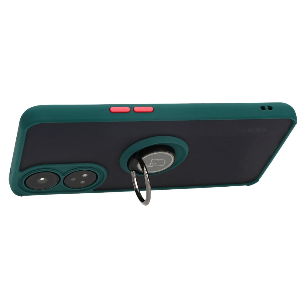Etui z uchwytem na palec Bizon Case Hybrid Ring do Oppo Reno8 T, przydymione z ciemnozieloną ramką