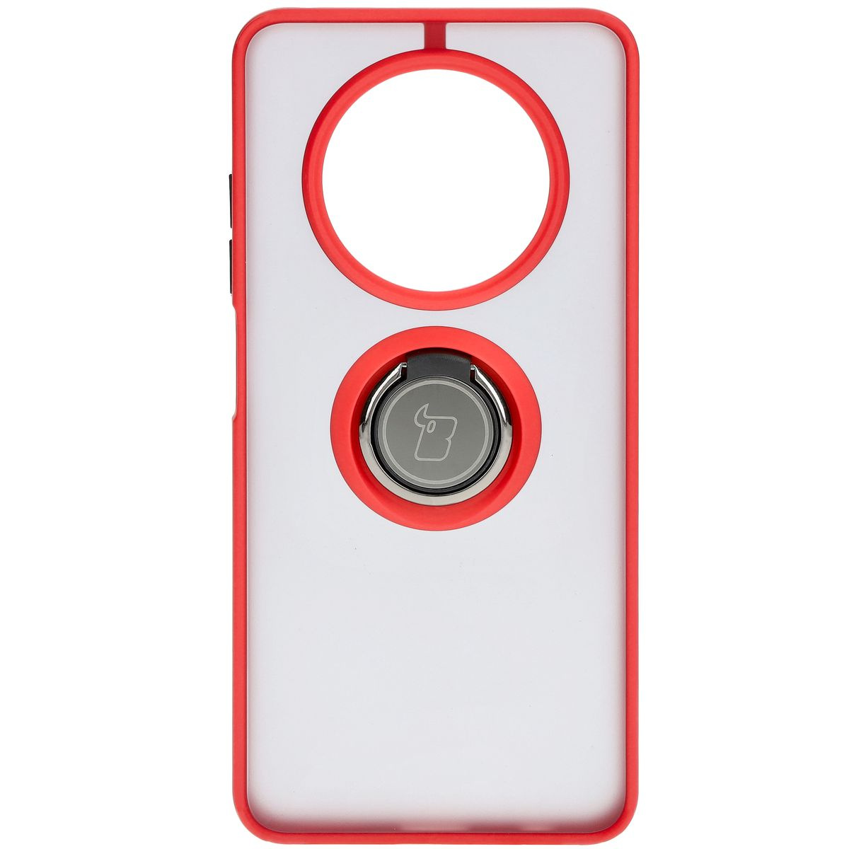 Etui z uchwytem na palec Bizon Case Hybrid Ring do Realme 12 / 12x, przydymione z czerwoną ramką