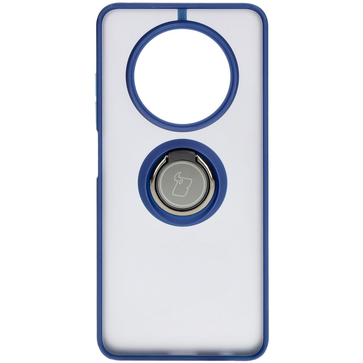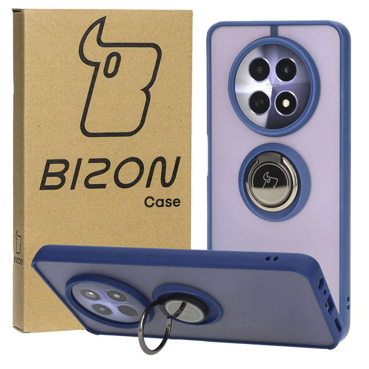 Etui z uchwytem na palec Bizon Case Hybrid Ring do Realme 12 / 12x, przydymione z granatową ramką