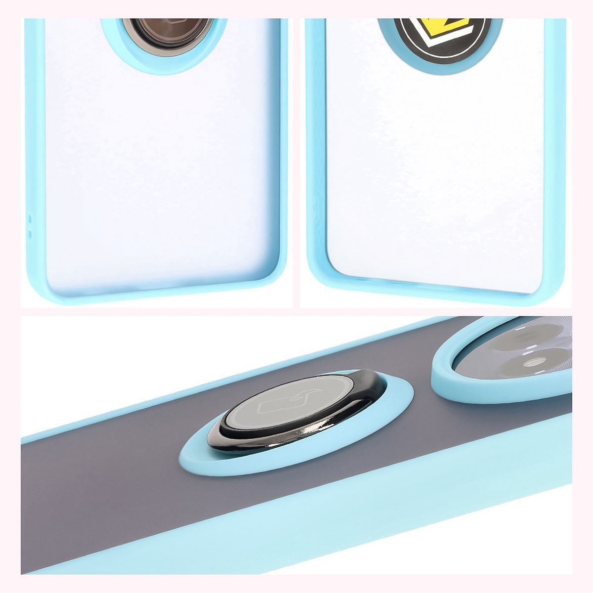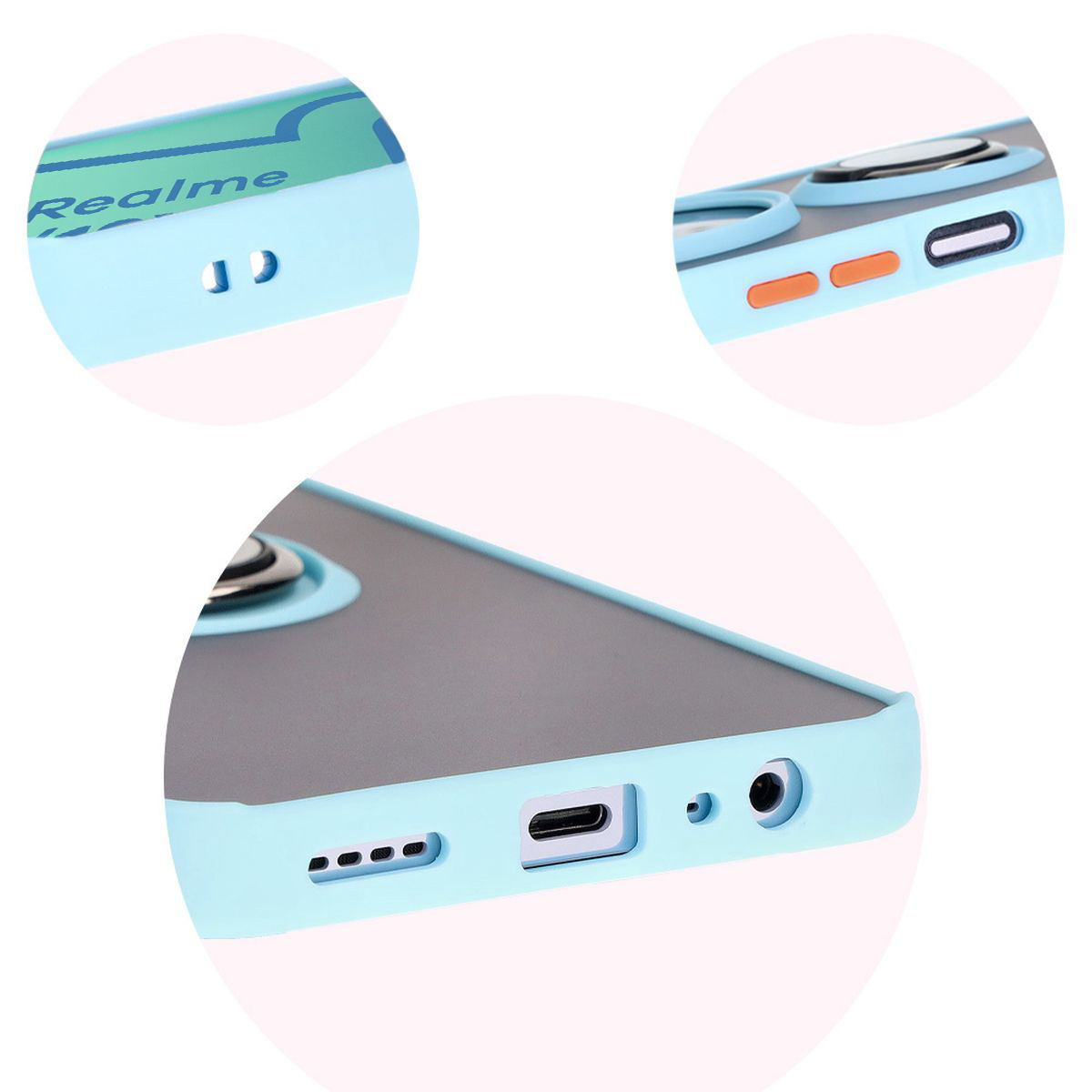 Etui z uchwytem na palec Bizon Case Hybrid Ring do Realme 12 / 12x, przydymione z jasnoniebieską ramką