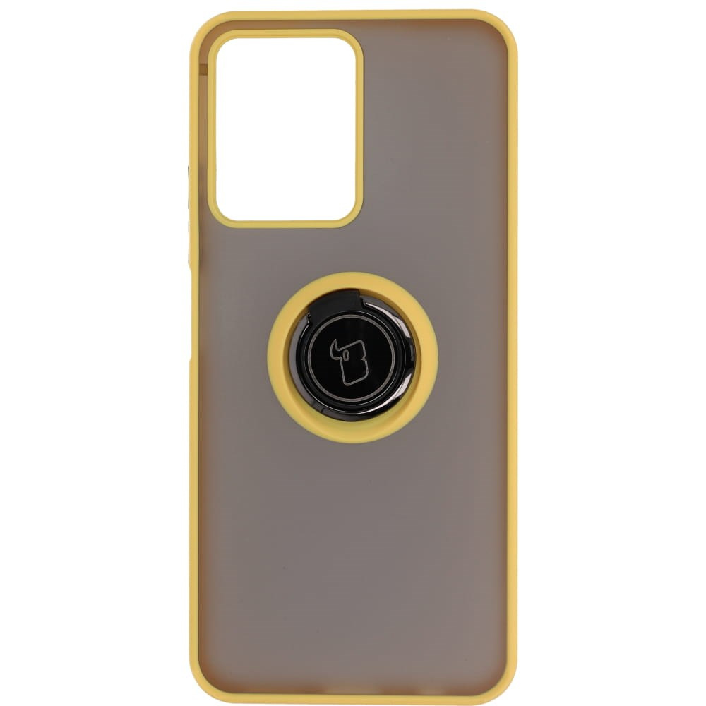 Etui z uchwytem na palec Bizon Case Hybrid Ring do Realme C33 / C30 / Narzo 50i Prime, przydymione z żółtą ramką