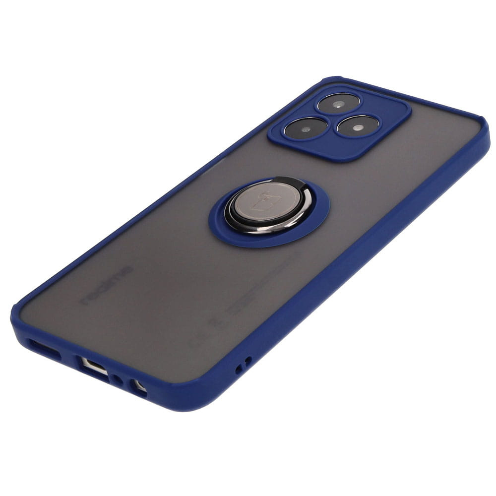 Etui z uchwytem na palec Bizon Case Hybrid Ring do Realme C53 / C51, przydymione z granatową ramką