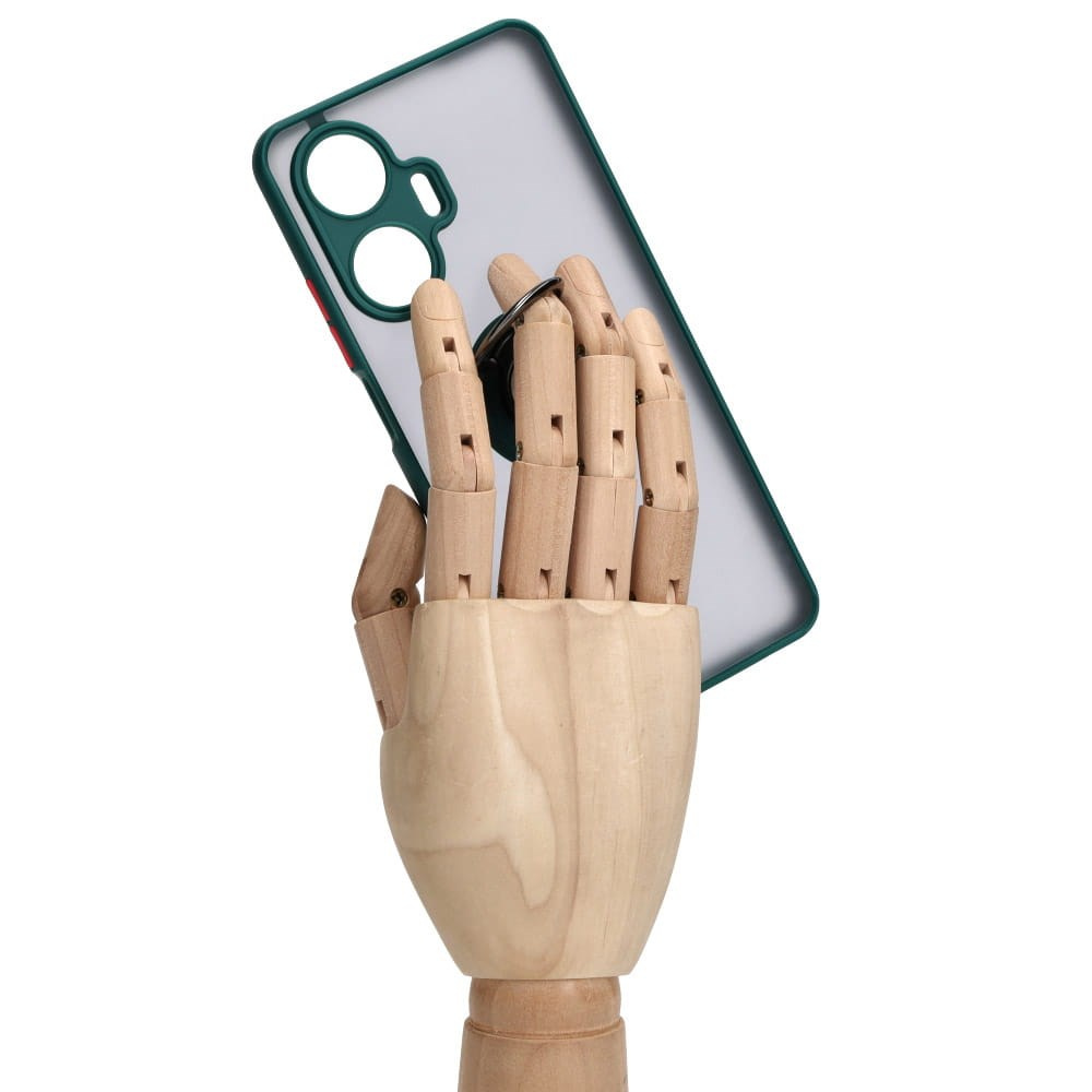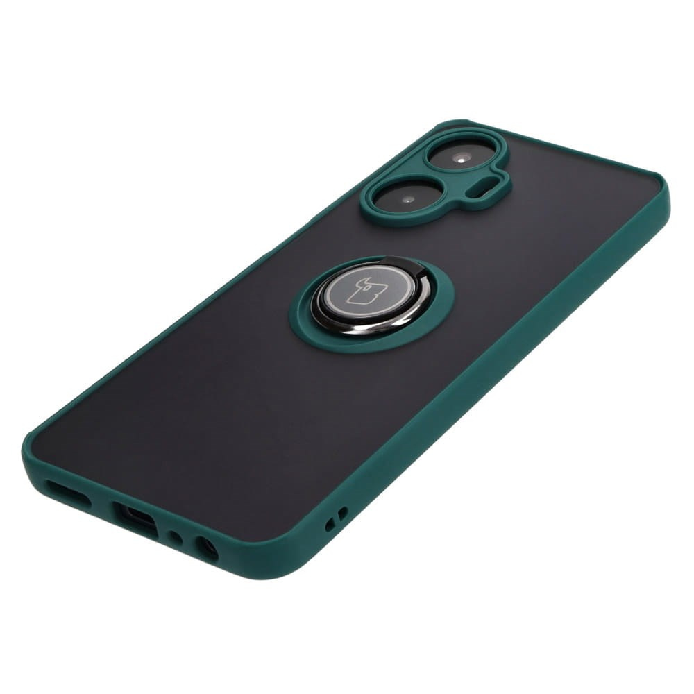 Etui z uchwytem na palec Bizon Case Hybrid Ring do Realme C55, przydymione z ciemnozieloną ramką