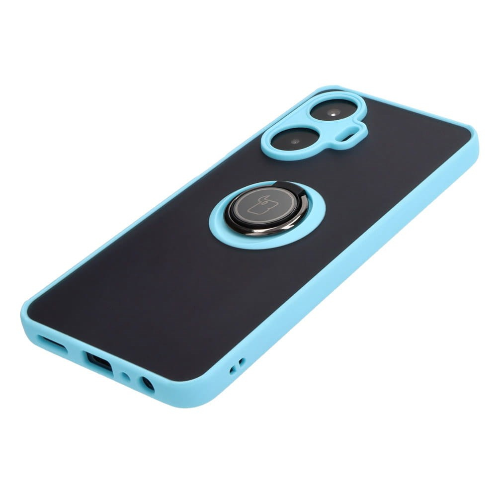 Etui z uchwytem na palec Bizon Case Hybrid Ring do Realme C55, przydymione z jasnoniebieską ramką