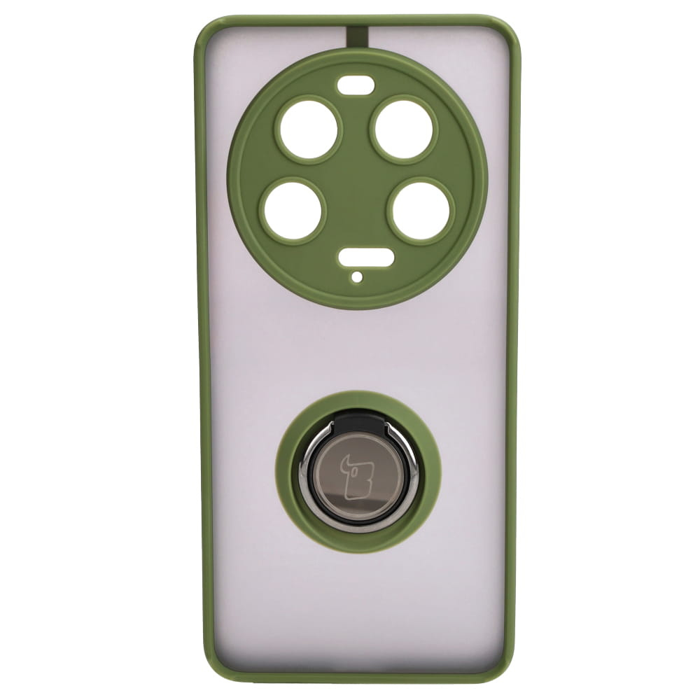 Etui z uchwytem na palec Bizon Case Hybrid Ring do Xiaomi 13 Ultra, przydymione z zieloną ramką