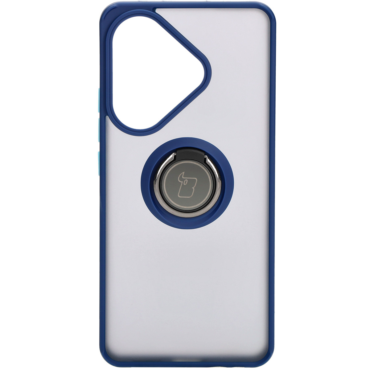 Etui z uchwytem na palec Bizon Case Hybrid Ring do Xiaomi Poco F6, przydymione z granatową ramką