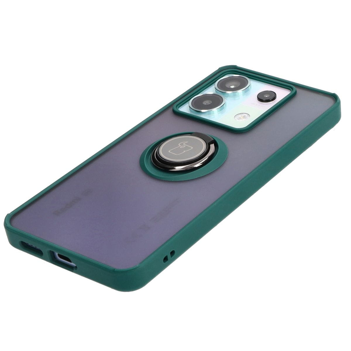 Etui z uchwytem na palec Bizon Case Hybrid Ring do Xiaomi Poco X6 / Xiaomi Redmi Note 13 Pro 5G, przydymione z ciemnozieloną ramką