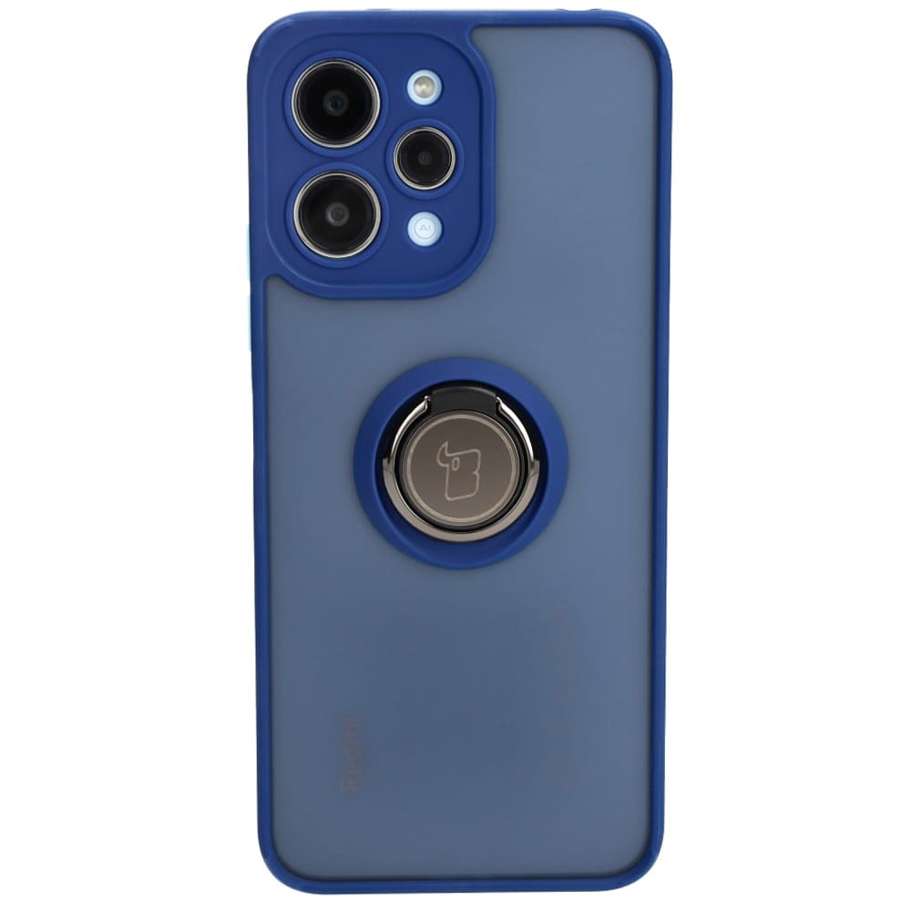 Etui z uchwytem na palec Bizon Case Hybrid Ring do Xiaomi Redmi 12, przydymione z granatową ramką