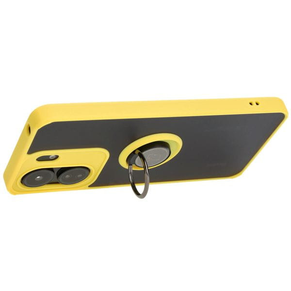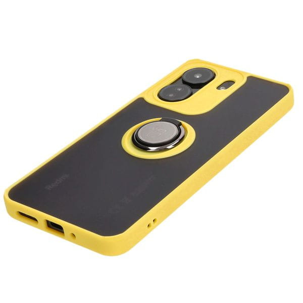 Etui z uchwytem na palec Bizon Case Hybrid Ring do Xiaomi Redmi 13C / Xiaomi Poco C65, przydymione z żółtą ramką