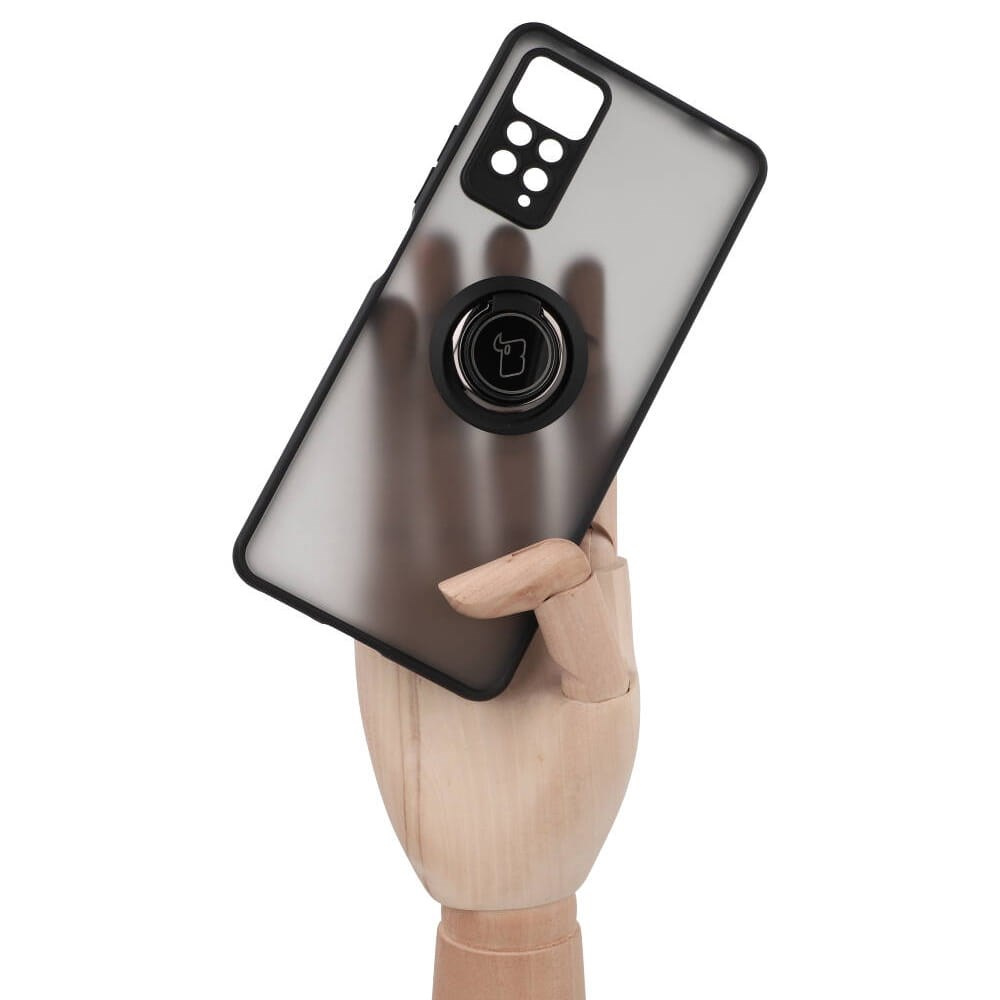Etui z uchwytem na palec Bizon Case Hybrid Ring do Xiaomi Redmi Note 11 Pro / Pro 5G, przydymione z czarną ramką