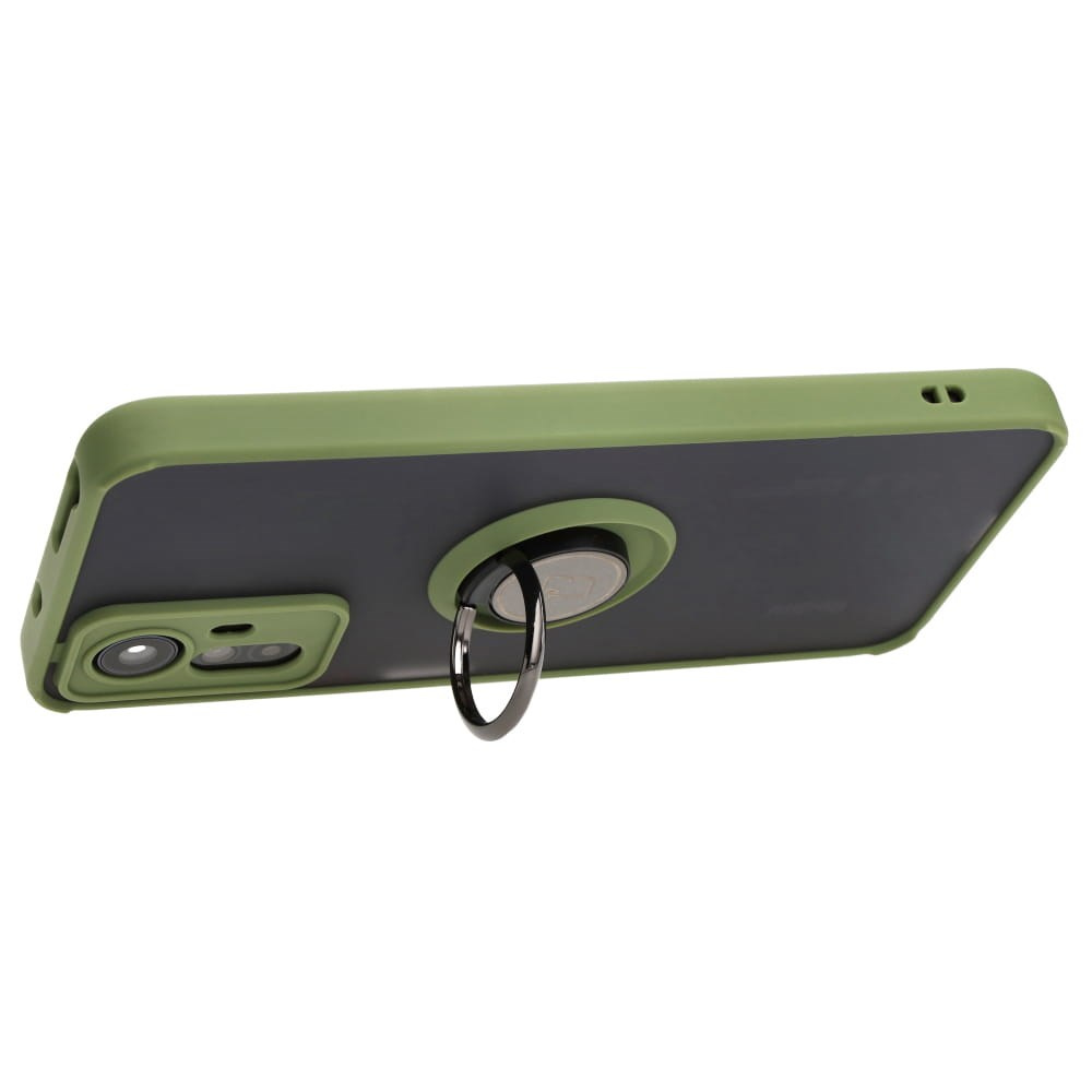 Etui z uchwytem na palec Bizon Case Hybrid Ring do Xiaomi Redmi Note 12S, przydymione z zieloną ramką