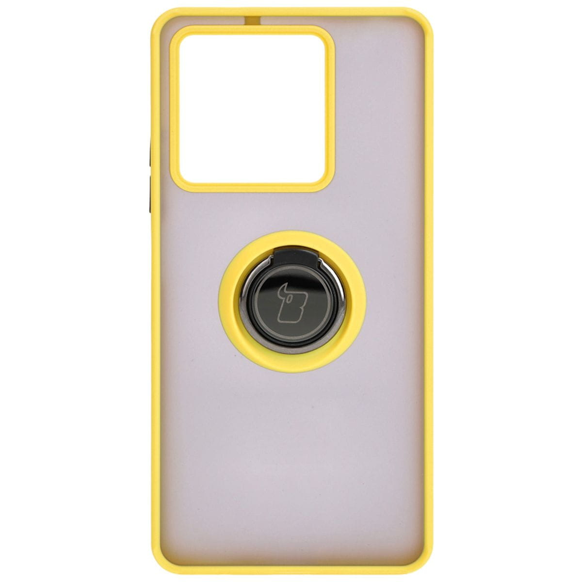Etui z uchwytem na palec Bizon Case Hybrid Ring do Xiaomi Redmi Note 13 5G, przydymione z żółtą ramką