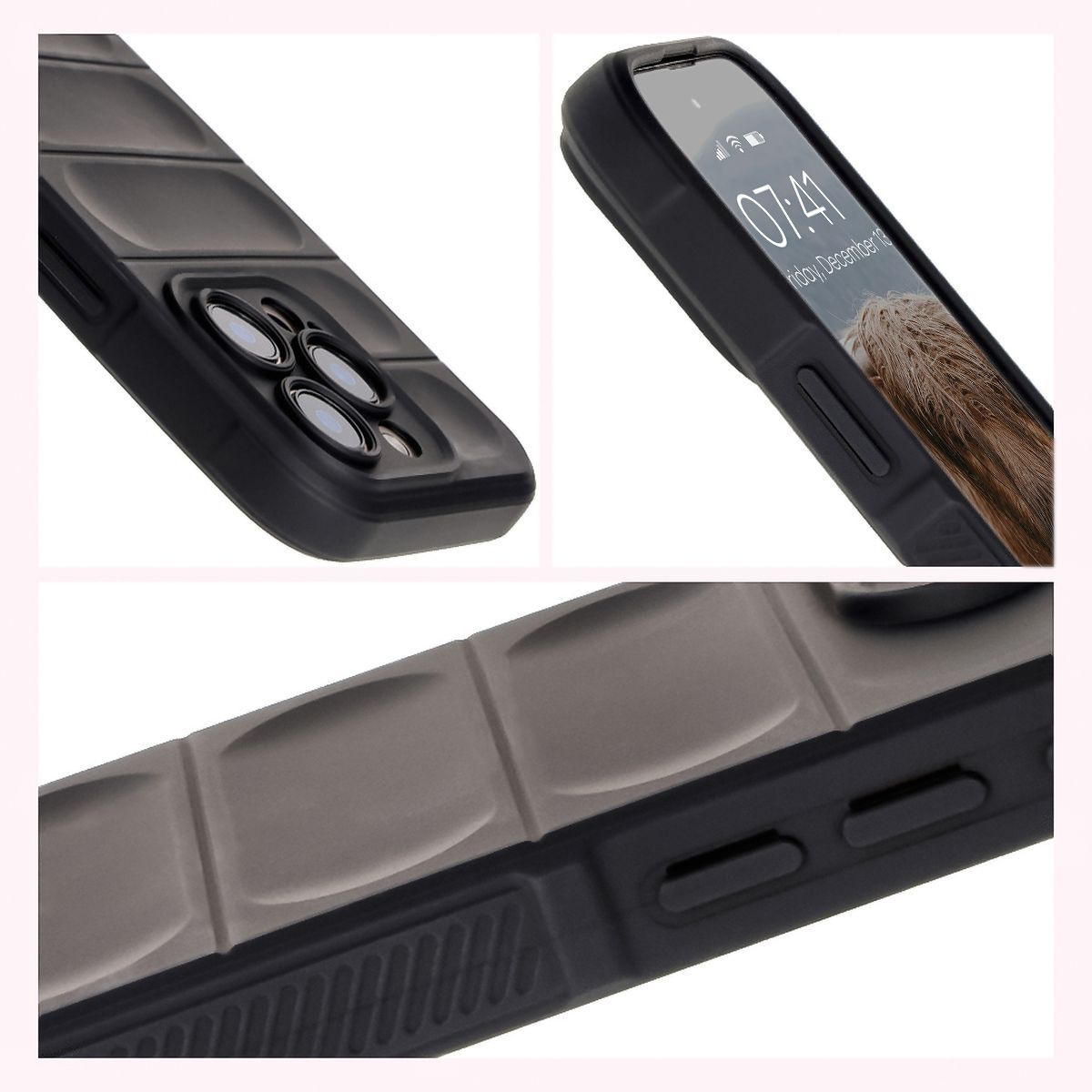 Wyżłobienia na pleckach nie tylko estetycznie wyglądają, ale również pełnią rolę niewidzialnych poduszek powietrznych! Ten sam rodzaj zabezpieczenia zastosowano także w rogach obudowy, aby Twój telefon był jeszcze bezpieczniejszy.