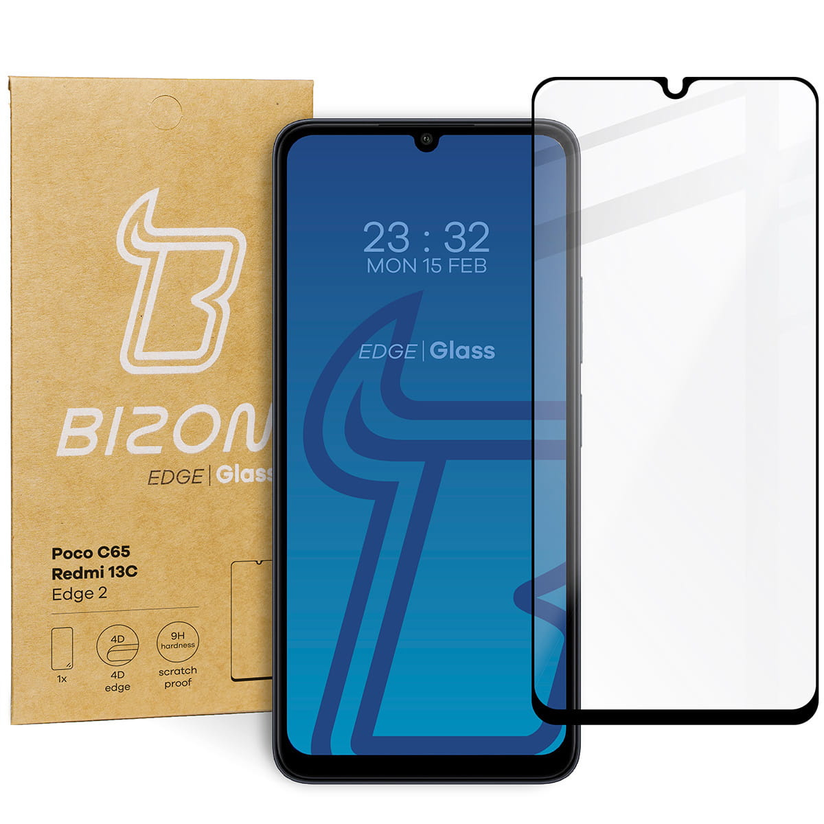 - Szkło hartowane Bizon Glass Edge 2 dla Redmi 13C/13C 5G/Poco C65, czarne.