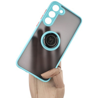 Etui z uchwytem na palec Bizon Case Hybrid Ring do Galaxy S22 Plus, przydymione z jasnoniebieską ramką