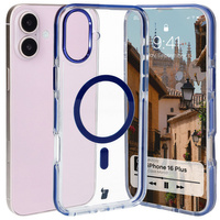 Etui z pierścieniem magnetycznym Bizon Case Marco do iPhone 16 Plus, przezroczyste z niebieską ramką