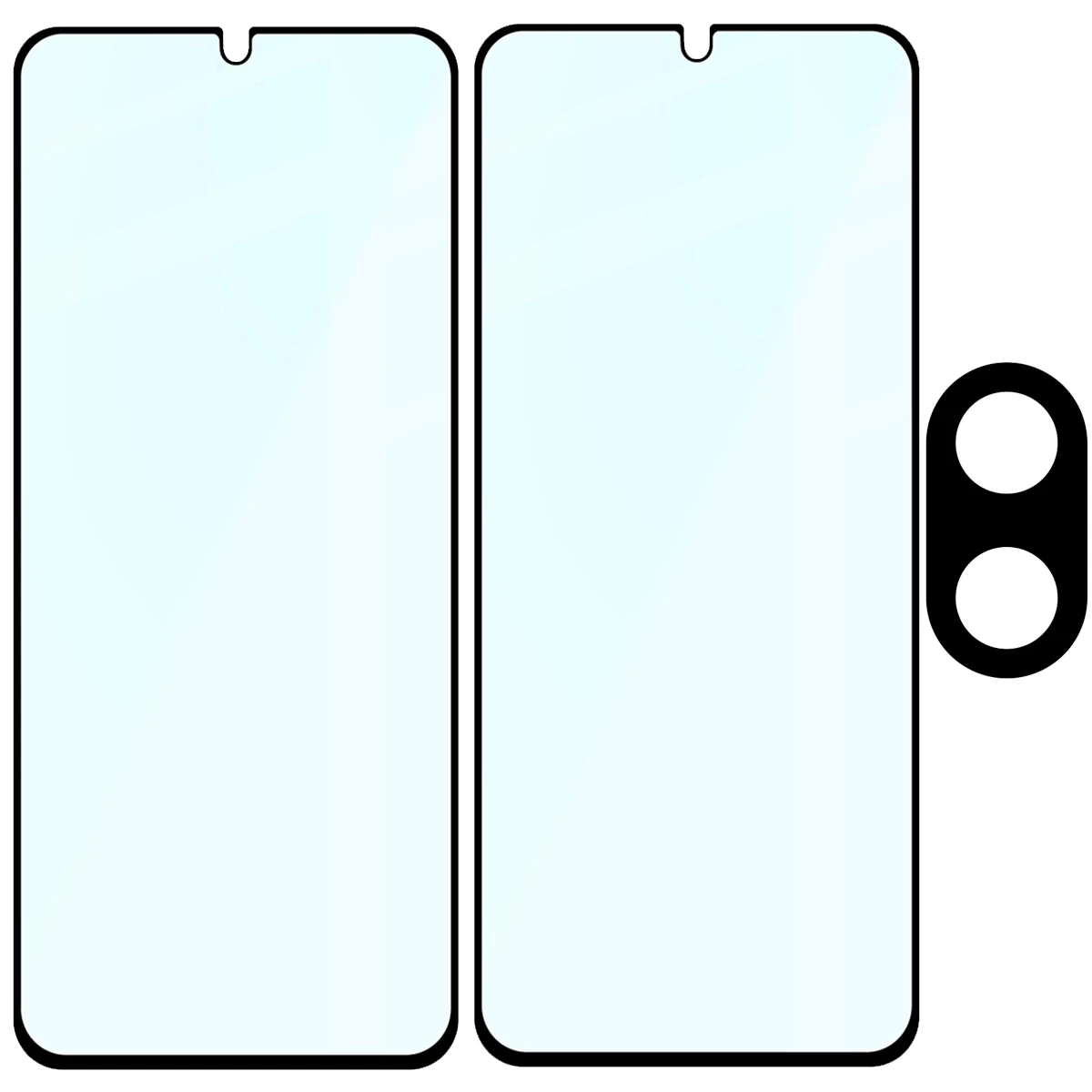 Bizon Glass Edge 2 Pack, oprócz 2 sztuk szkła hartowanego na wyświetlacz i 1 sztuki nakładki na aparat, zawiera: