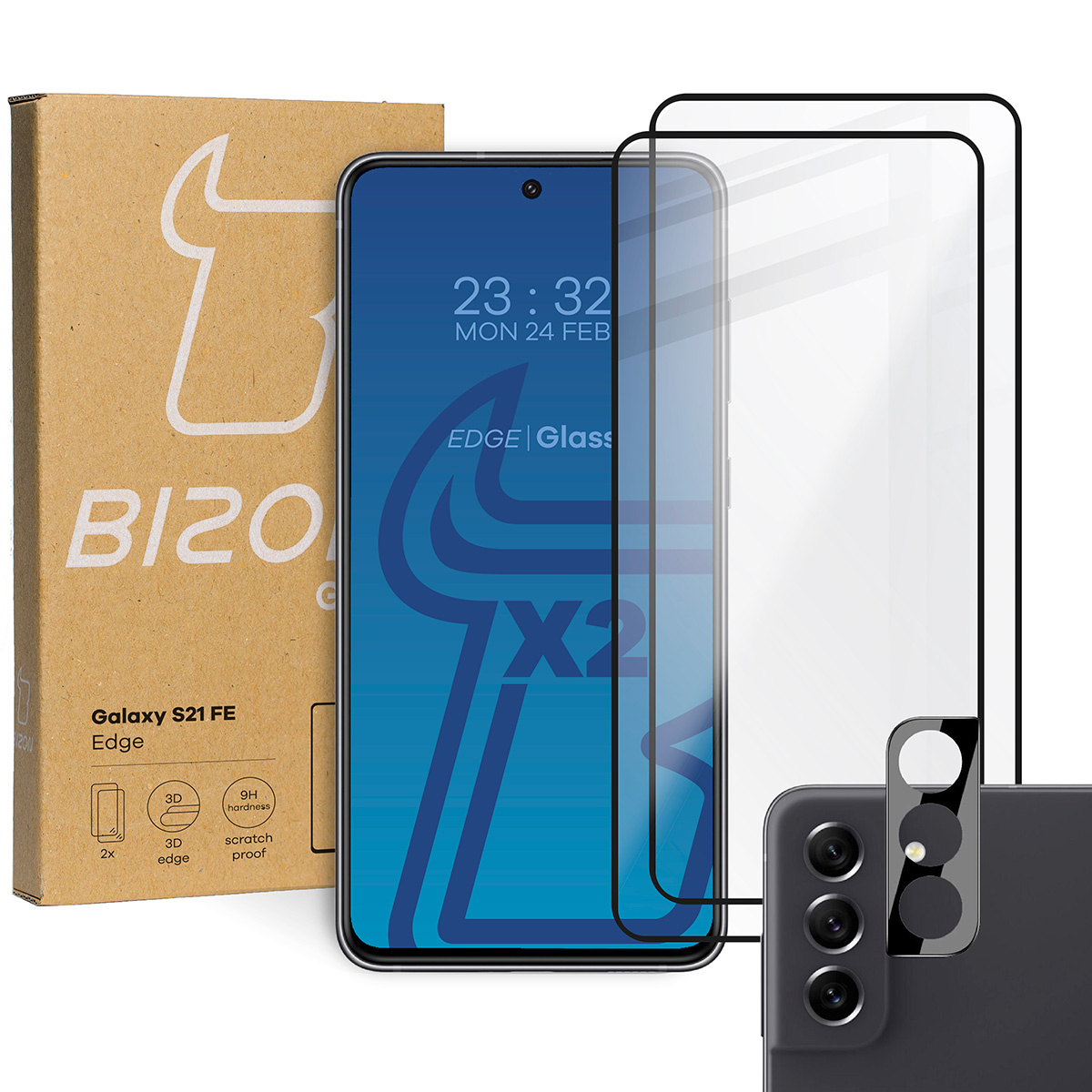 2x Szkło + szybka na aparat Bizon Edge Pack do Galaxy S21 FE
