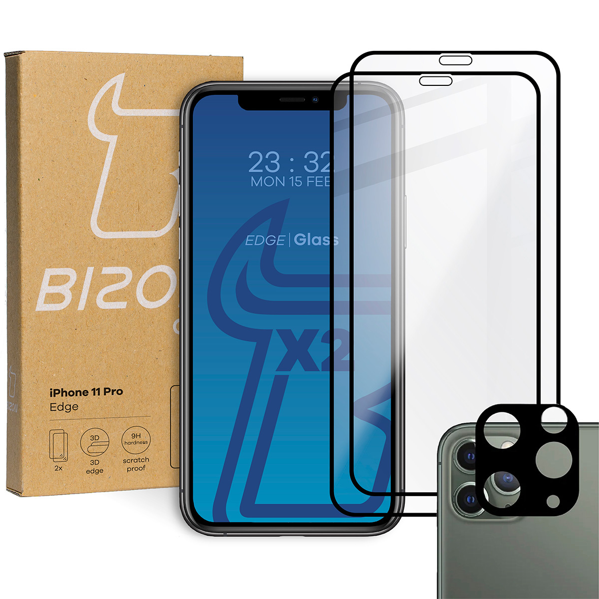 - Szkło hartowane Bizon Glass Edge - 2 sztuki + ochrona obiektywu dla iPhone 11 Pro, czarne