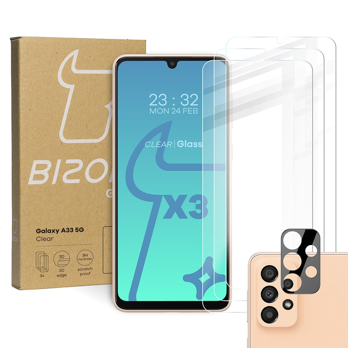3x Szkło hartowane + szybka na aparat Bizon Glass Clear Pack do Galaxy A33