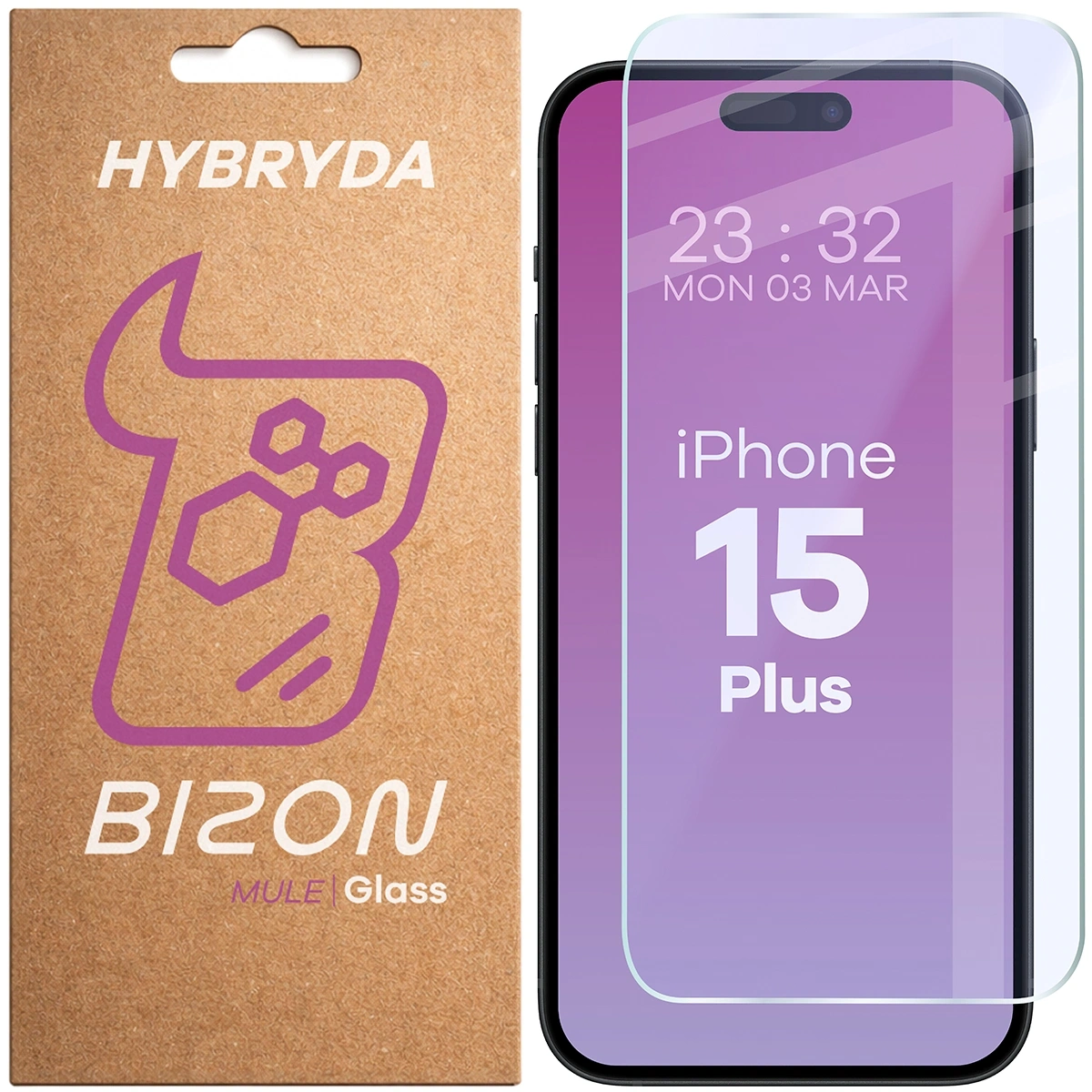 - Szkło 9H, szkło elastyczne, szkiełko - nieważne, jak na to mówisz, ważne, że udało Ci się znaleźć szkło hybrydowe Bizon Glass Mule do iPhone 15 Plus!