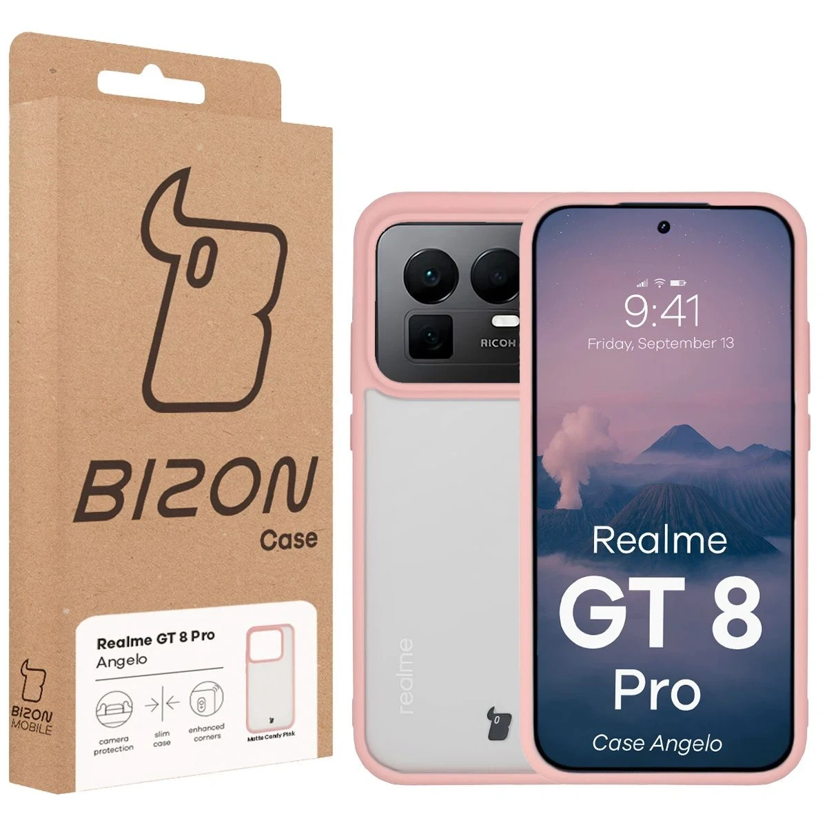 - Matowe etui, mleczna obudowa - nieważne, jak na to mówisz, ważne, że udało Ci się znaleźć półprzeźroczyste etui z jasnoróżową ramką Bizon Case Angelo do Realme GT 8 Pro!