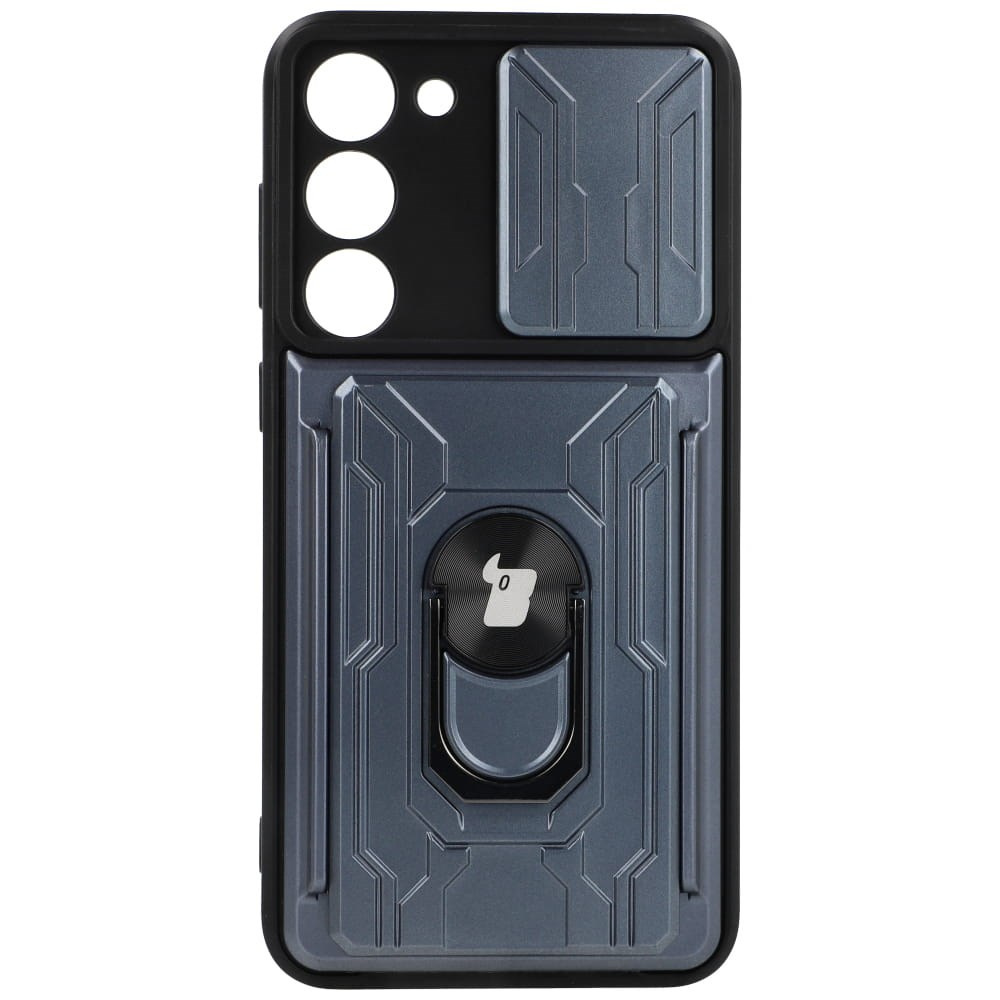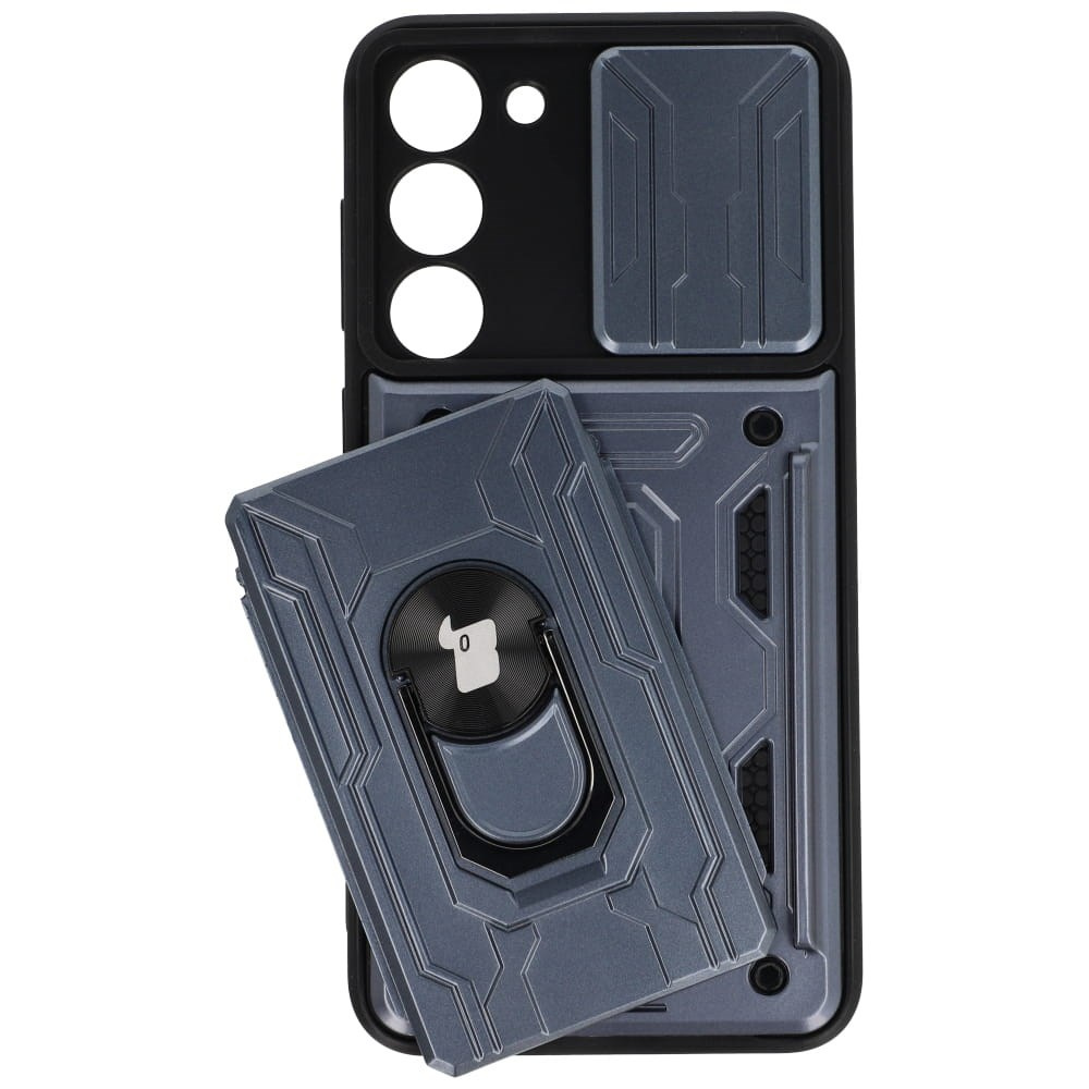 Etui Bizon Case Camshield Card Slot Ring do Galaxy S23 Plus, szare