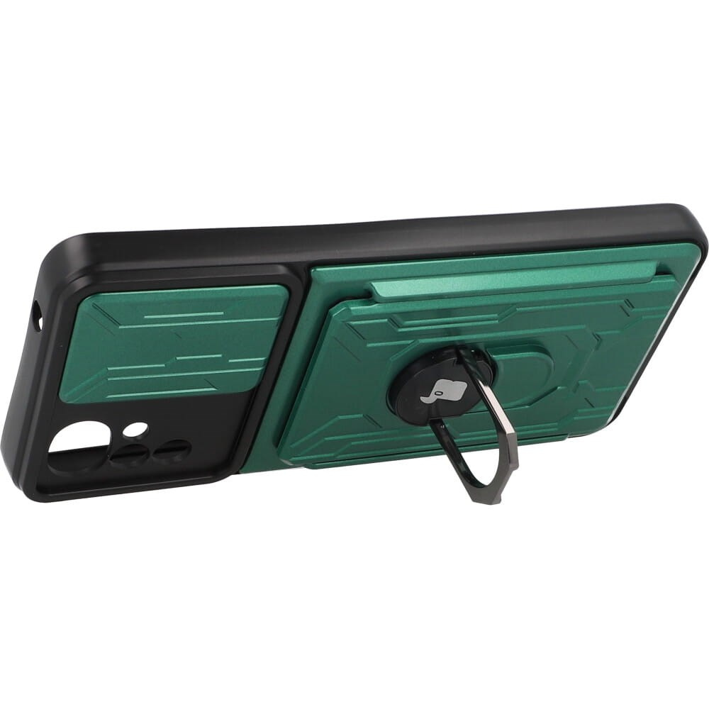 Etui Bizon Case Camshield Card Slot Ring do Moto G22, zielone