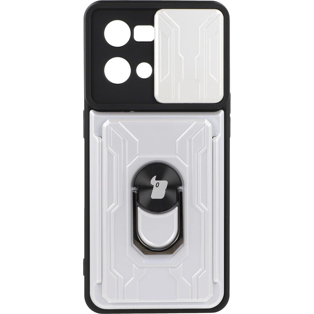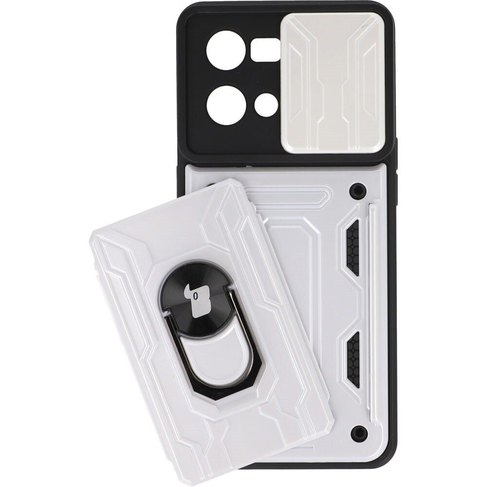 Etui Bizon Case Camshield Card Slot Ring do Oppo Reno 7 4G, białe