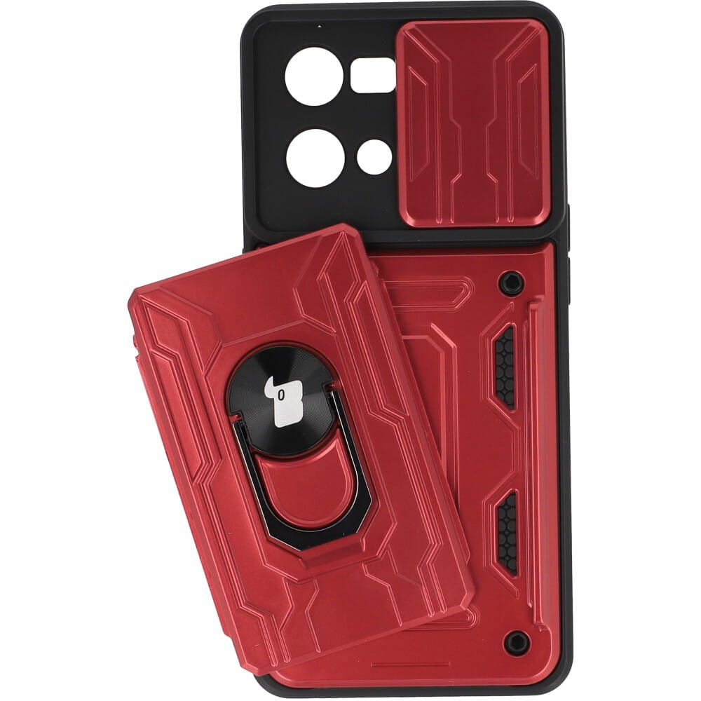 Etui Bizon Case Camshield Card Slot Ring do Oppo Reno 7 4G, czerwone