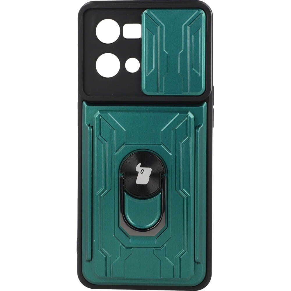 Etui Bizon Case Camshield Card Slot Ring do Oppo Reno 7 4G, zielone
