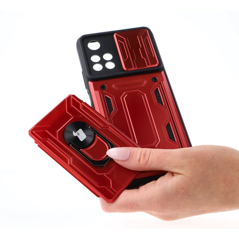 Etui Bizon Case Camshield Card Slot Ring do Xiaomi Redmi Note 11 Pro+ 5G, czerwone