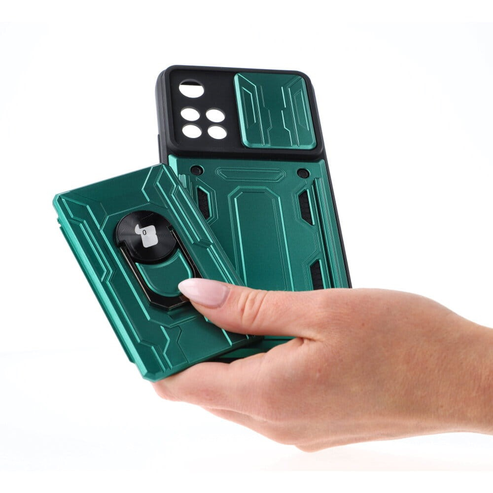 Etui Bizon Case Camshield Card Slot Ring do Xiaomi Redmi Note 11 Pro+ 5G, zielone